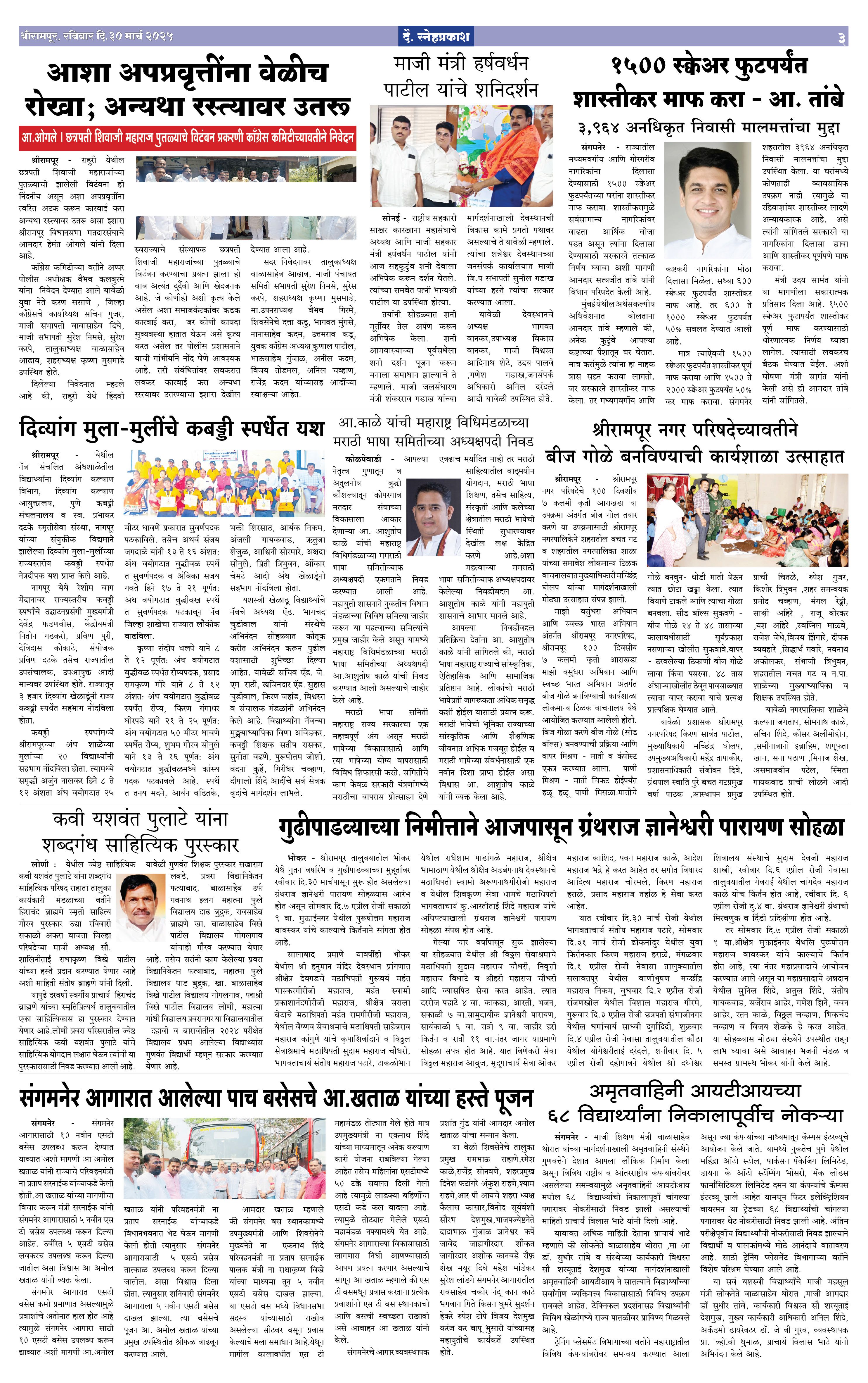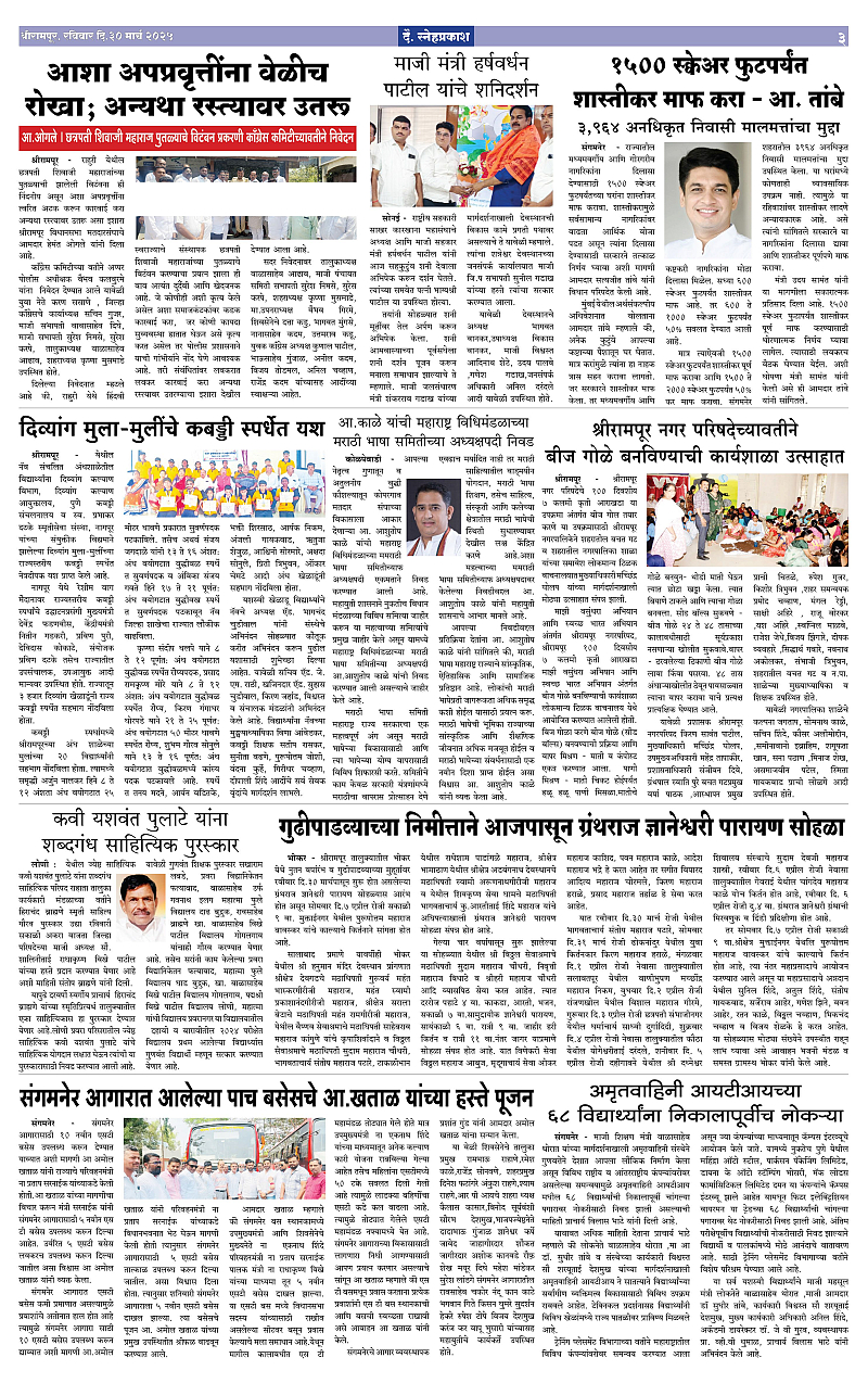 Daily Snehprakash (Marathi) Page: 3 March 30, 2025 ahilyanagar-pune-nashik-shrirampur-maharashtra 1 2 3 4 Page 1Page 2Page 3Page 4 × Daily Snehprakash (Marathi) 1-4 Snehprakash (30 March 2025)1-4 Snehprakash (30 March 2025)21-4 Snehprakash (30 March 2025)31-4 Snehprakash (30 March 2025)4 << First << 3 >> Last >> Page no 1Page no 2Page no 3Page no 4