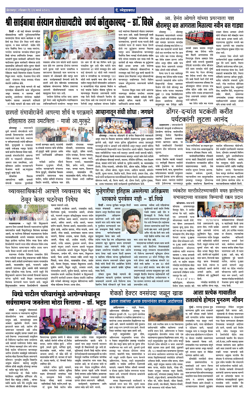 Daily Snehprakash (Marathi) Page: 4 March 30, 2025 ahilyanagar-pune-nashik-shrirampur-maharashtra 1 2 3 4 Page 1Page 2Page 3Page 4 × Daily Snehprakash (Marathi) 1-4 Snehprakash (30 March 2025)1-4 Snehprakash (30 March 2025)21-4 Snehprakash (30 March 2025)31-4 Snehprakash (30 March 2025)4 << First << 4 >> Last >> Page no 1Page no 2Page no 3Page no 4