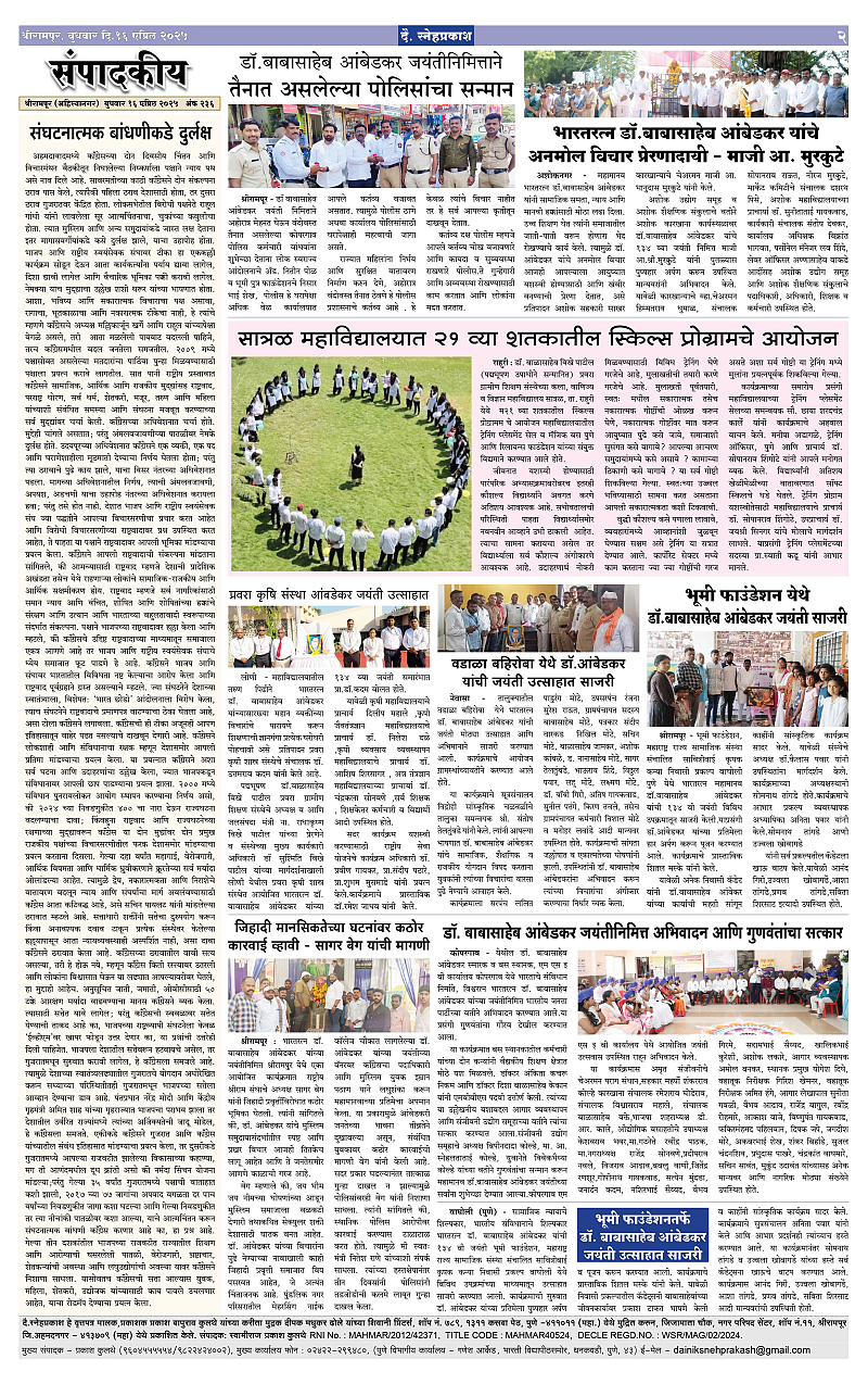 Daily Snehprakash (Marathi) Page: 2 April 16, 2025 Ahilyanagar-Pune-Nashik-shrirampur maharashtra 1 2 3 4 Page 1Page 2Page 3Page 4 × Daily Snehprakash (Marathi) 1-41-421-431-44 << First << 2 >> Last >> Page no 1Page no 2Page no 3Page no 4