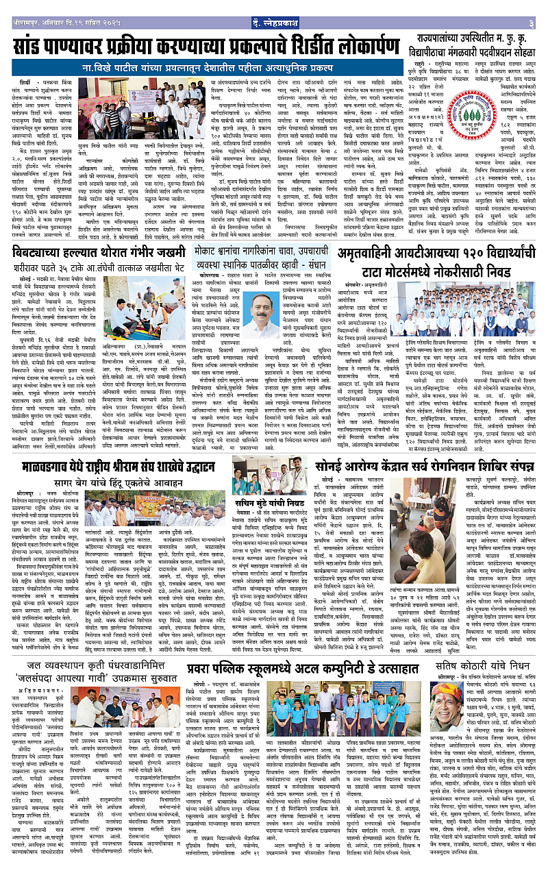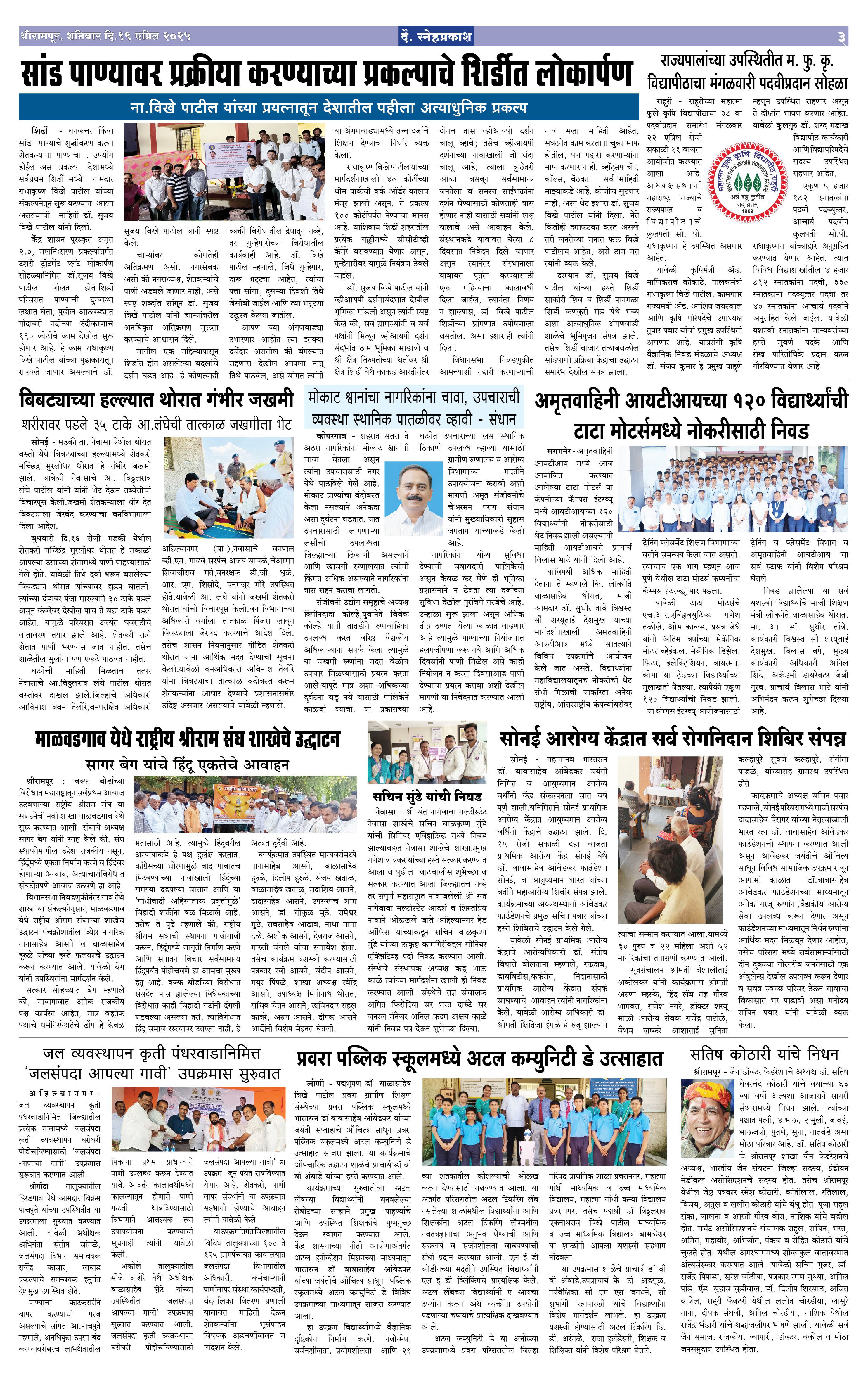 Daily Snehprakash (Marathi) Page: 3 April 19, 2025 ahilyanagar-pune-nashik-shrirampur-maharashtra 1 2 3 4 Page 1Page 2Page 3Page 4 × Daily Snehprakash (Marathi) 1-41-42441-44 << First << 3 >> Last >> Page no 1Page no 2Page no 3Page no 4