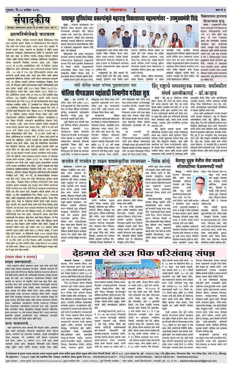 Daily Snehprakash (Marathi) Page: 2 September 04, 2025 Ahilyanagar-Pune-Nashik-shrirampur maharashtra 1 2 3 4 Page 1Page 2Page 3Page 4 × Daily Snehprakash (Marathi) 1-4 colour1-4 colour21-4 colour31-4 colour4 << First << 2 >> Last >> Page no 1Page no 2Page no 3Page no 4
