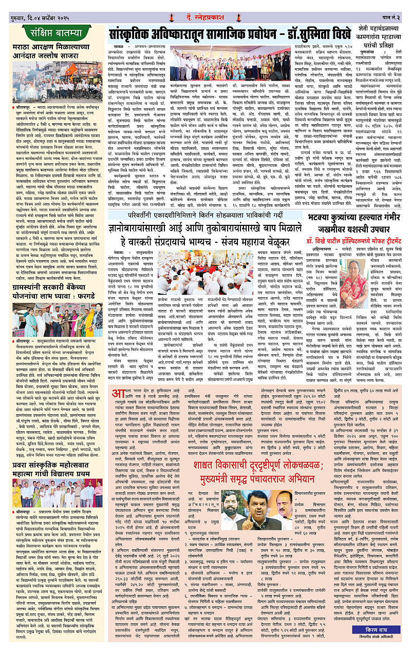 Daily Snehprakash (Marathi) Page: 3 September 04, 2025 Ahilyanagar-Pune-Nashik-shrirampur maharashtra 1 2 3 4 Page 1Page 2Page 3Page 4 × Daily Snehprakash (Marathi) 1-4 colour1-4 colour21-4 colour31-4 colour4 << First << 3 >> Last >> Page no 1Page no 2Page no 3Page no 4