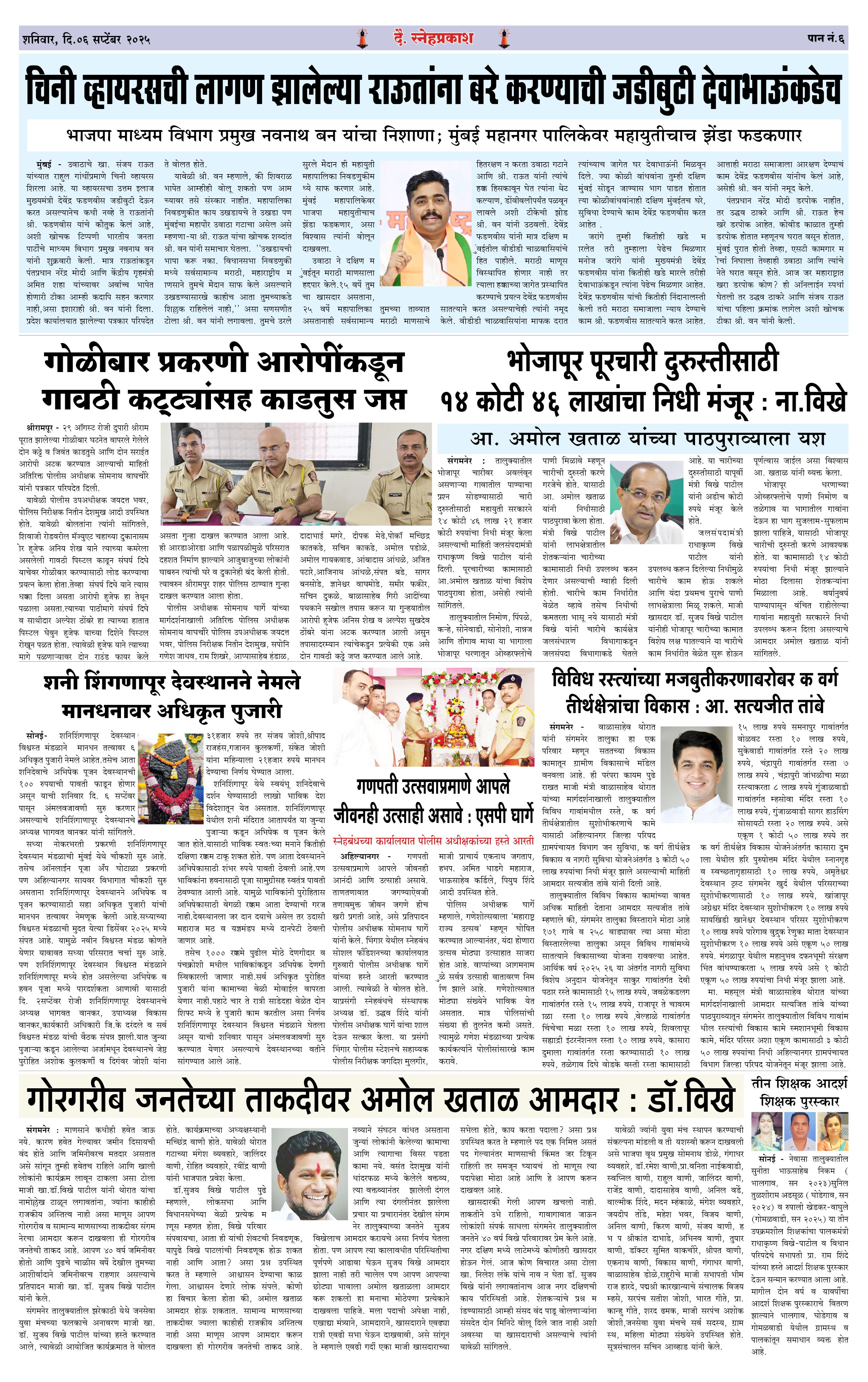 Daily Snehprakash (Marathi) Page: 6 September 06, 2025 Ahilyanagar-Pune-Nashik-shrirampur maharashtra 3 4 5 6 Page 1Page 2Page 3Page 4Page 5Page 6 × Daily Snehprakash (Marathi) 1-6 colour1-6 colour21-6 colour31-6 colour41-6 colour51-6 colour6 << First << 6 >> Last >> Page no 1Page no 2Page no 3Page no 4Page no 5Page no 6