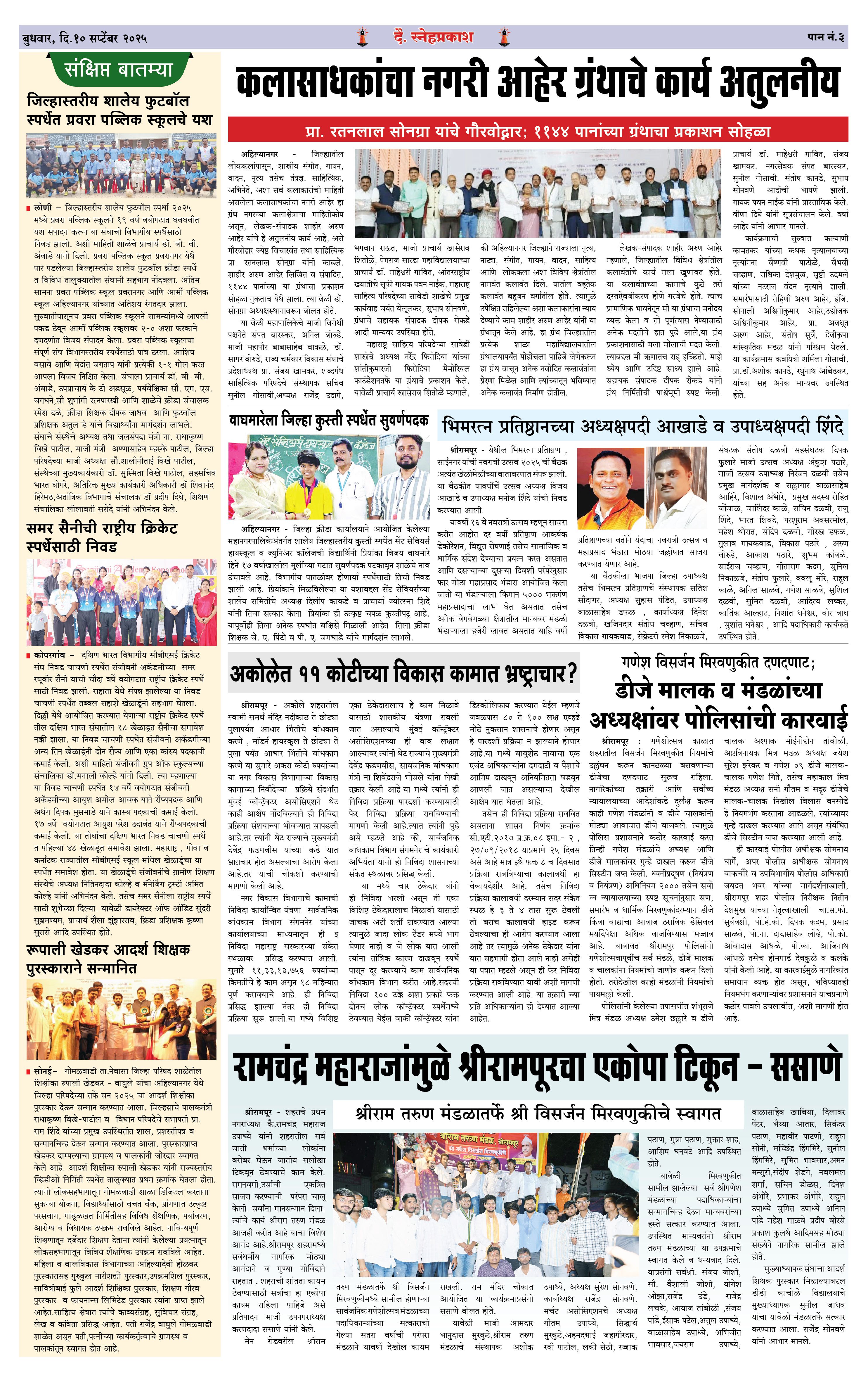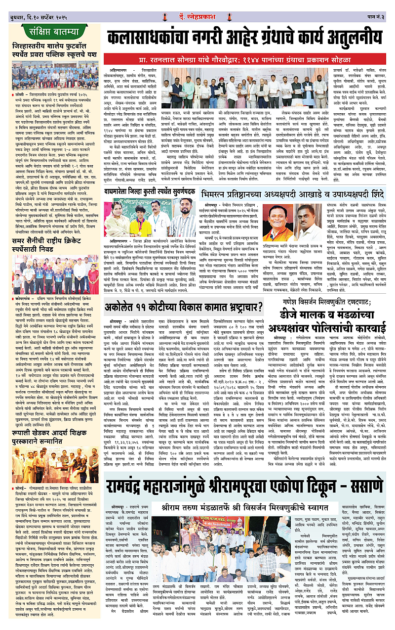 Daily Snehprakash (Marathi) Page: 3 September 10, 2025 Ahilyanagar-Pune-Nashik-shrirampur maharashtra 1 2 3 4 Page 1Page 2Page 3Page 4 × Daily Snehprakash (Marathi) 1-4 colour1-4 colour21-4 colour31-4 colour4 << First << 3 >> Last >> Page no 1Page no 2Page no 3Page no 4