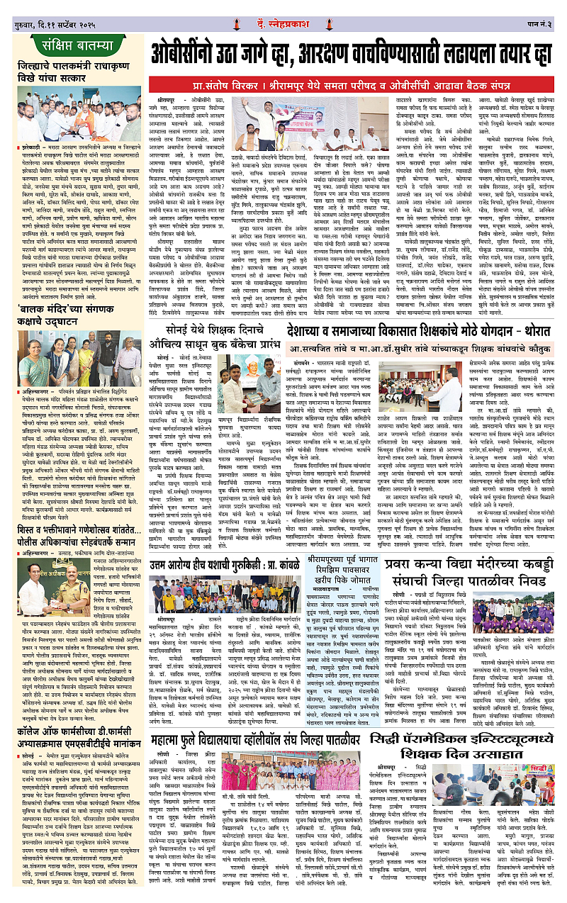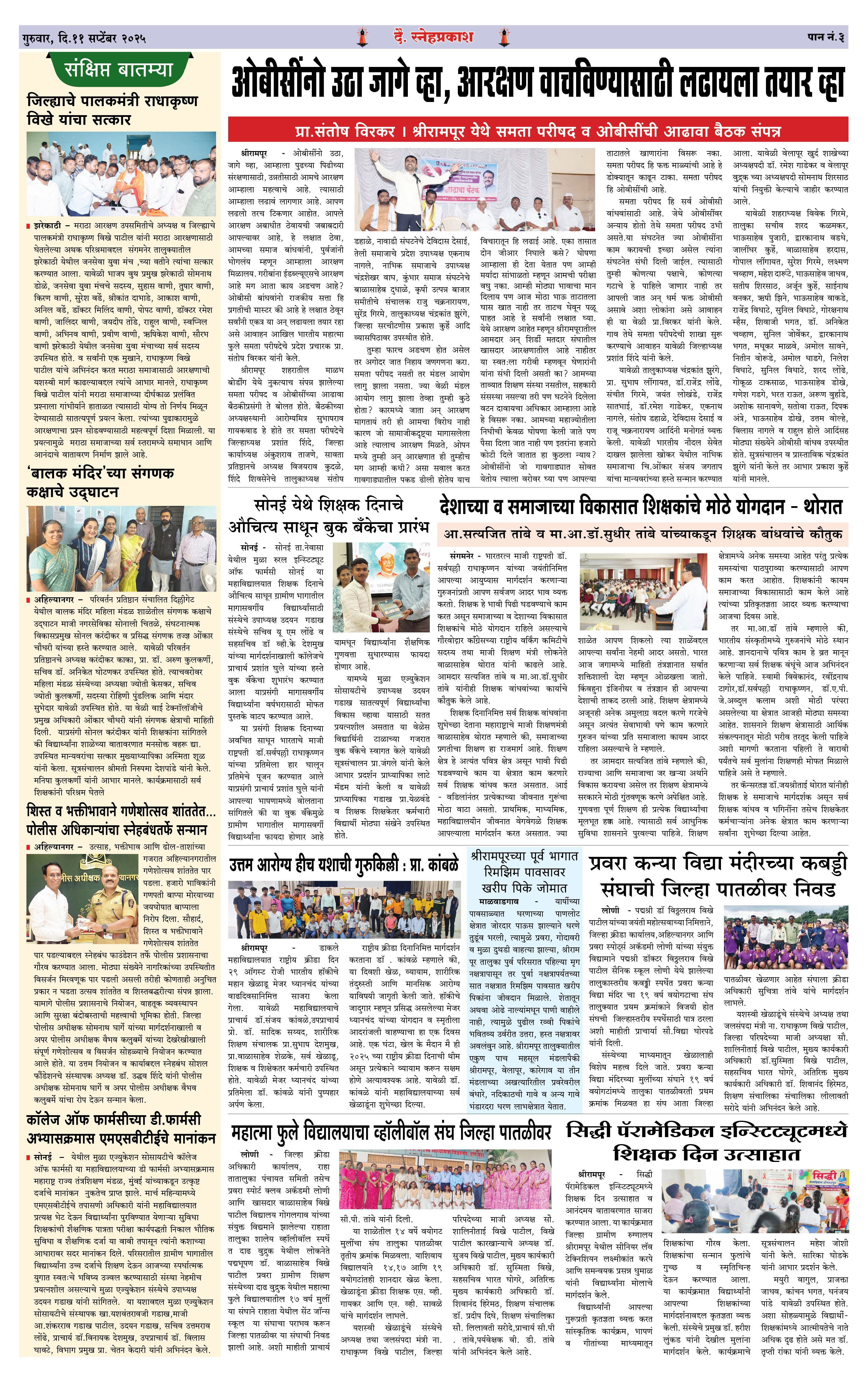 Daily Snehprakash (Marathi) Page: 3 September 11, 2025 Ahilyanagar-Pune-Nashik-shrirampur maharashtra 1 2 3 4 Page 1Page 2Page 3Page 4 × Daily Snehprakash (Marathi) 1-41-421-431-44 << First << 3 >> Last >> Page no 1Page no 2Page no 3Page no 4