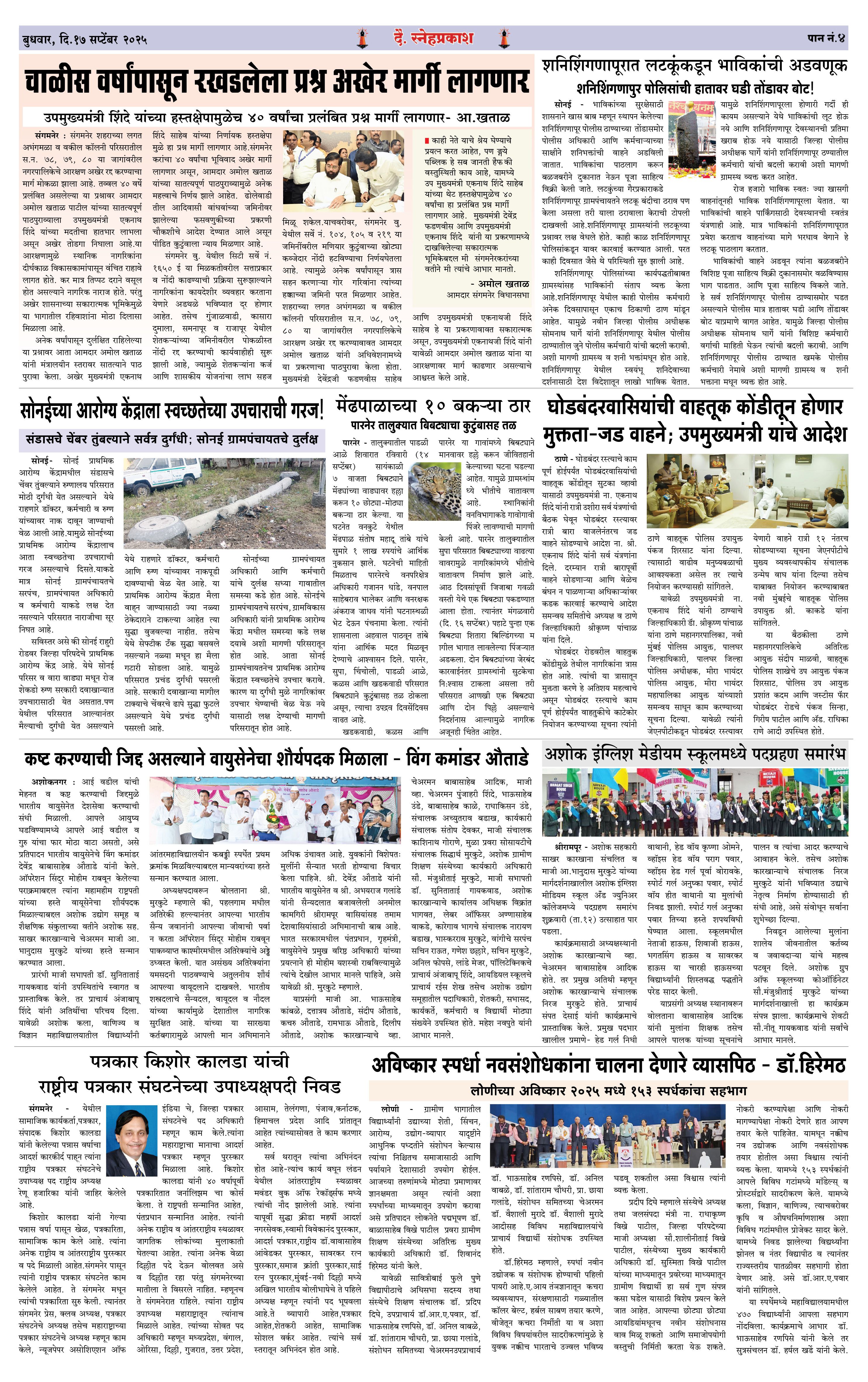 Daily Snehprakash (Marathi) Page: 4 September 17, 2025 Ahilyanagar-Pune-Nashik-shrirampur maharashtra 1 2 3 4 Page 1Page 2Page 3Page 4 × Daily Snehprakash (Marathi) 1-4 colour1-4 colour21-4 colour31-4 colour4 << First << 4 >> Last >> Page no 1Page no 2Page no 3Page no 4