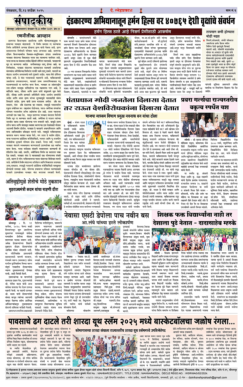 Daily Snehprakash (Marathi) Page: 2 September 23, 2025 Ahilyanagar-Pune-Nashik-shrirampur maharashtra 1 2 3 4 Page 1Page 2Page 3Page 4 × Daily Snehprakash (Marathi) 1-41-421-431-44 << First << 2 >> Last >> Page no 1Page no 2Page no 3Page no 4