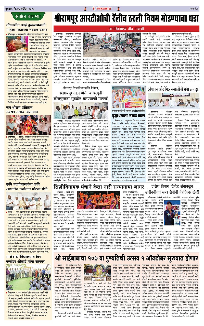 Daily Snehprakash (Marathi) Page: 3 September 25, 2025 Ahilyanagar-Pune-Nashik-shrirampur maharashtra 1 2 3 4 Page 1Page 2Page 3Page 4 × Daily Snehprakash (Marathi) 1-41-421-431-44 << First << 3 >> Last >> Page no 1Page no 2Page no 3Page no 4