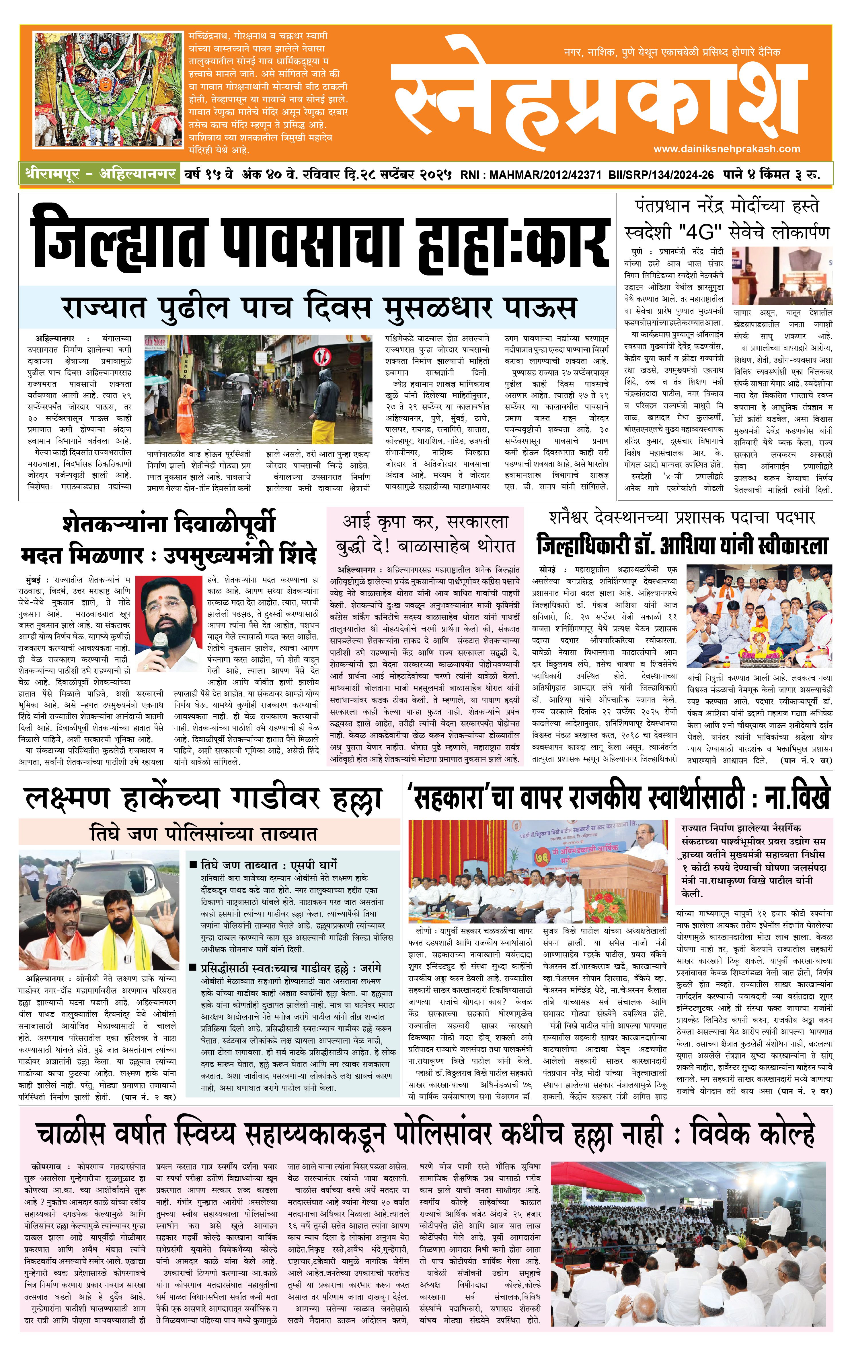 Daily Snehprakash (Marathi) September 28, 2025 Ahilyanagar-Pune-Nashik-shrirampur maharashtra 1 2 3 4 Page 1Page 2Page 3Page 4 × Daily Snehprakash (Marathi) 1-41-421-431-44 << First << 1 >> Last >> Page no 1Page no 2Page no 3Page no 4