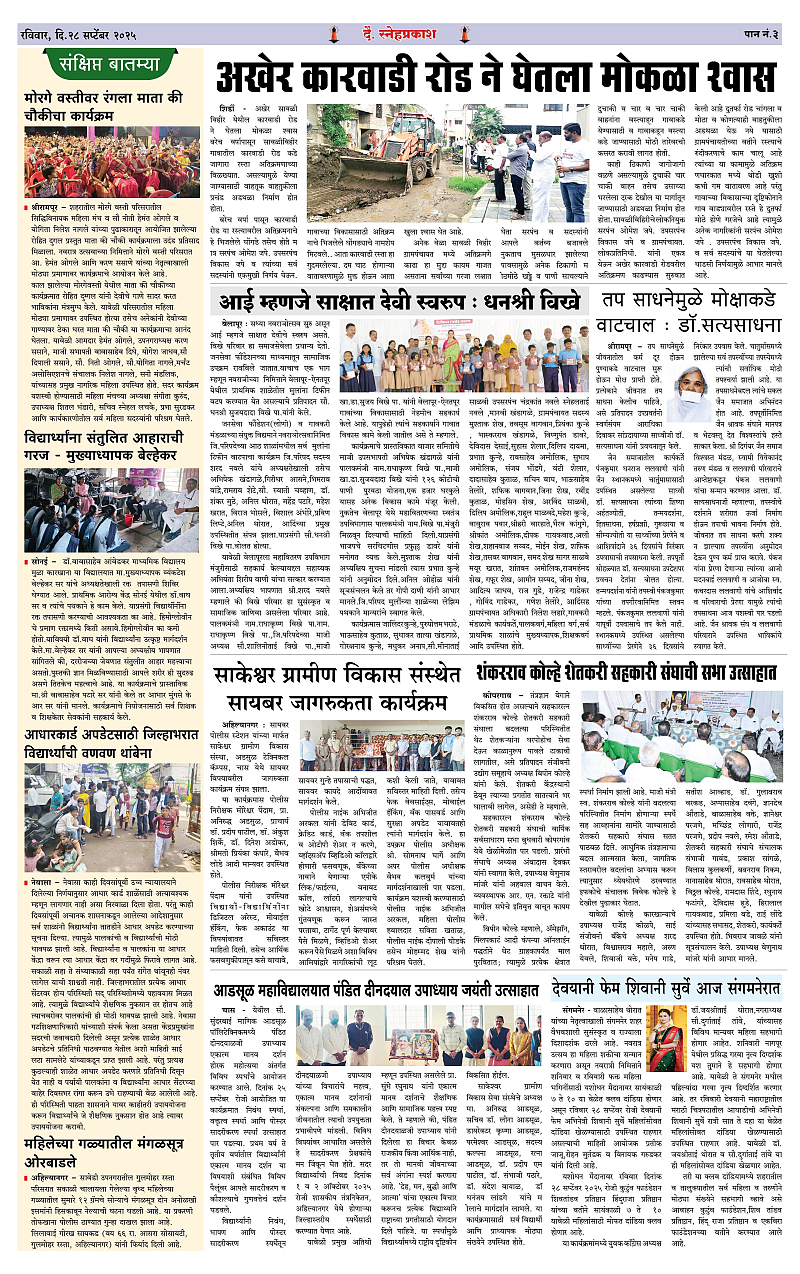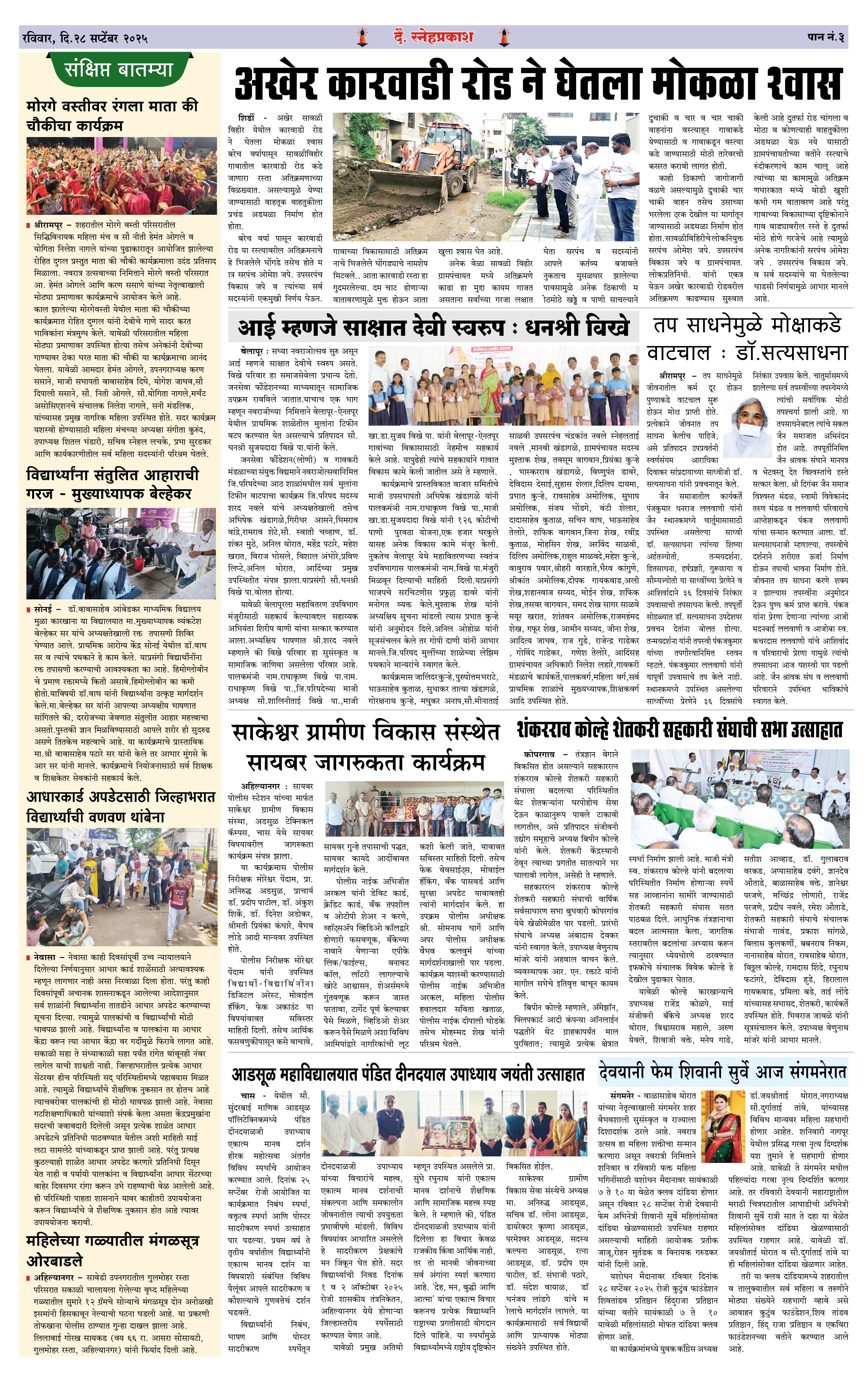 Daily Snehprakash (Marathi) Page: 3 September 28, 2025 Ahilyanagar-Pune-Nashik-shrirampur maharashtra 1 2 3 4 Page 1Page 2Page 3Page 4 × Daily Snehprakash (Marathi) 1-41-421-431-44 << First << 3 >> Last >> Page no 1Page no 2Page no 3Page no 4