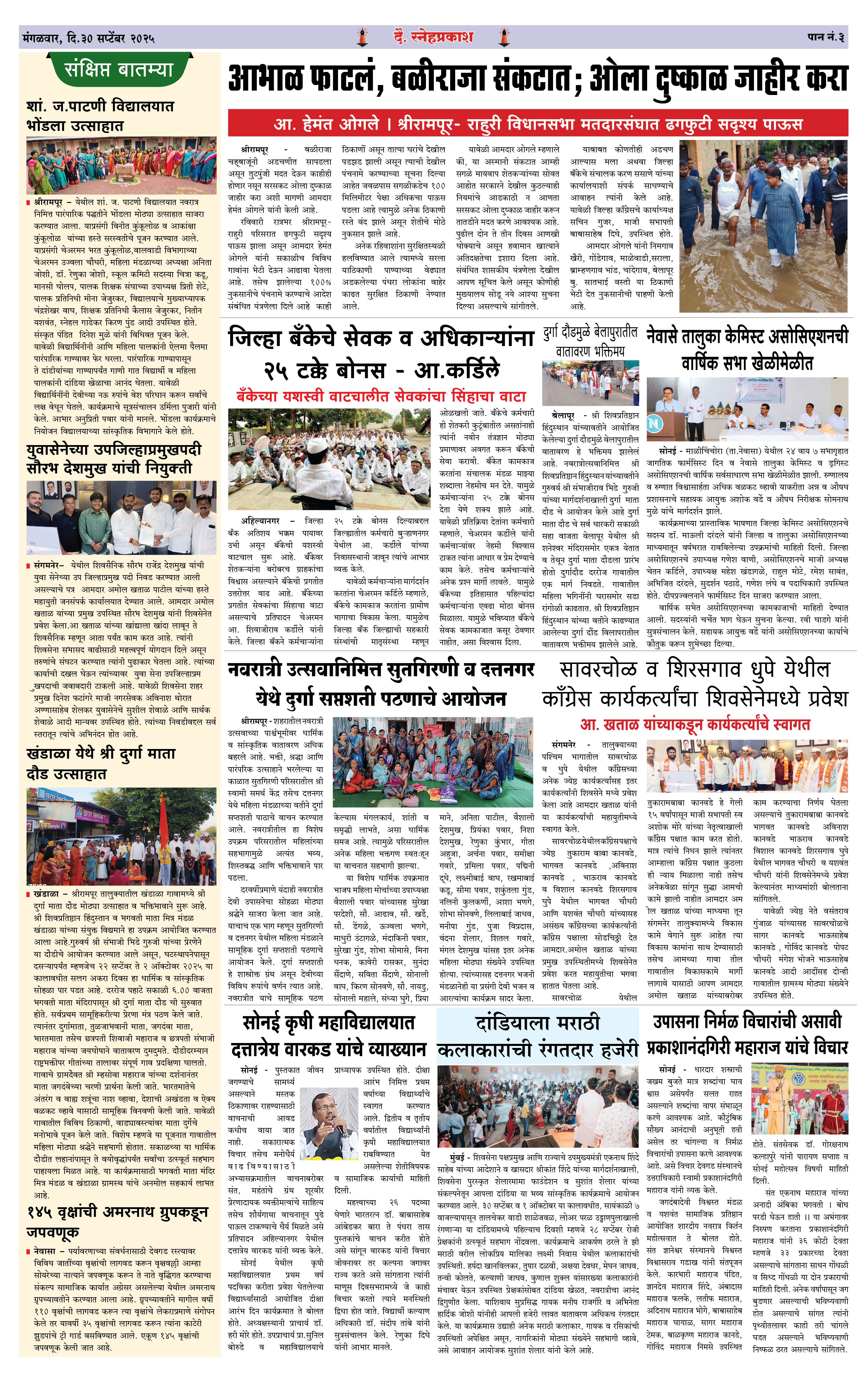 Daily Snehprakash (Marathi) Page: 3 September 30, 2025 Ahilyanagar-Pune-Nashik-shrirampur maharashtra 1 2 3 4 Page 1Page 2Page 3Page 4 × Daily Snehprakash (Marathi) 1-41-421-431-44 << First << 3 >> Last >> Page no 1Page no 2Page no 3Page no 4