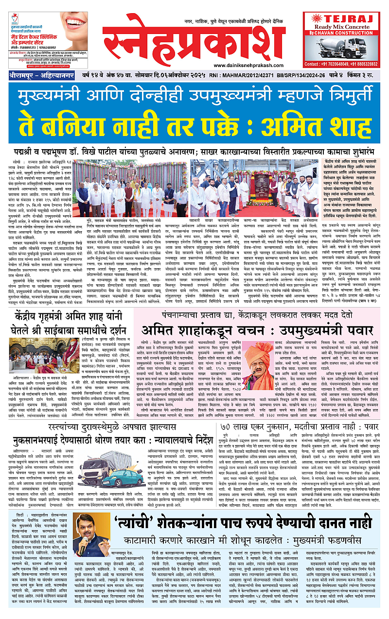 Daily Snehprakash (Marathi) October 06, 2025 Ahilyanagar-Pune-Nashik-shrirampur maharashtra 1 2 3 4 Page 1Page 2Page 3Page 4 × Daily Snehprakash (Marathi) Snehprakash 06 October (1-4 Pages) ColourSnehprakash 06 October (1-4 Pages) Colour2Snehprakash 06 October (1-4 Pages) Colour3Snehprakash 06 October (1-4 Pages) Colour4 << First << 1 >> Last >> Page no 1Page no 2Page no 3Page no 4