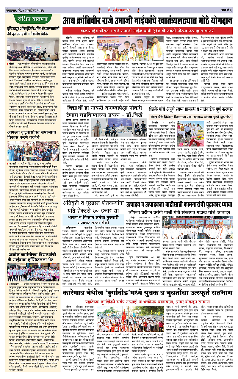 Daily Snehprakash (Marathi) Page: 3 October 07, 2025 Daily Snehprakash (Marathi) 1 2 3 4 Page 1Page 2Page 3Page 4 × Daily Snehprakash (Marathi) 1-4 colour1-4 colour21-4 colour31-4 colour4 << First << 3 >> Last >> Page no 1Page no 2Page no 3Page no 4
