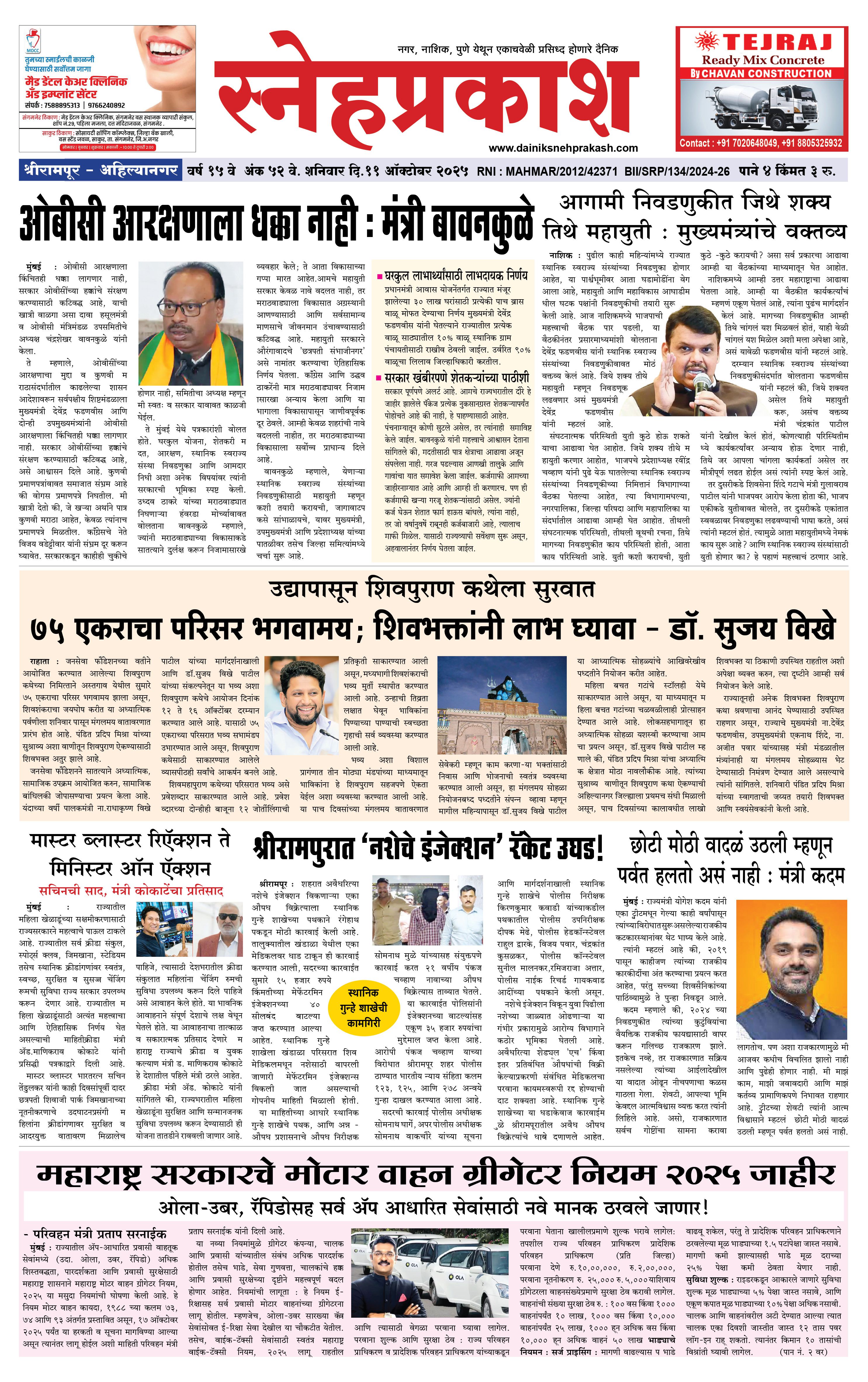 Daily Snehprakash (Marathi) October 11, 2025 Ahilyanagar-Pune-Nashik-shrirampur maharashtra 1 2 3 4 Page 1Page 2Page 3Page 4 × Daily Snehprakash (Marathi) 1-4 colour1-4 colour21-4 colour344 << First << 1 >> Last >> Page no 1Page no 2Page no 3Page no 4