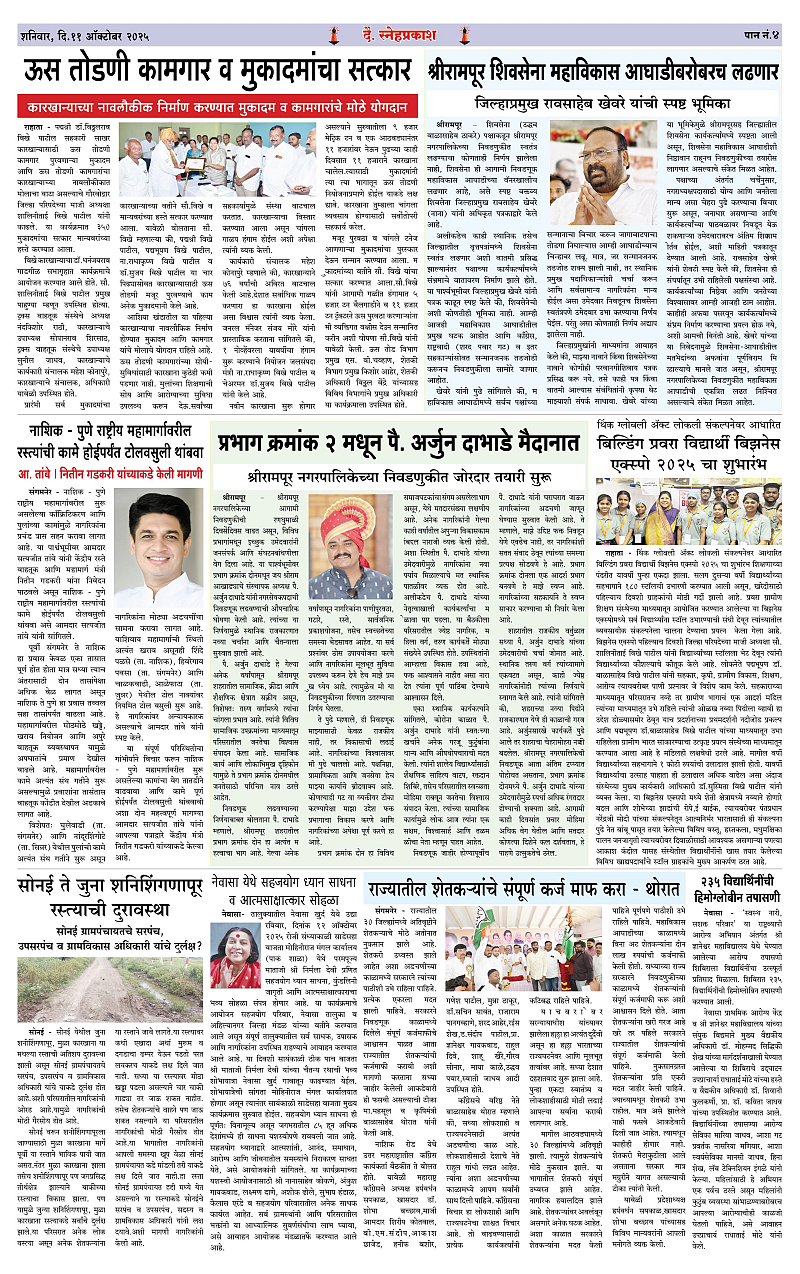 Daily Snehprakash (Marathi) Page: 4 October 11, 2025 Ahilyanagar-Pune-Nashik-shrirampur maharashtra 1 2 3 4 Page 1Page 2Page 3Page 4 × Daily Snehprakash (Marathi) 1-4 colour1-4 colour21-4 colour344 << First << 4 >> Last >> Page no 1Page no 2Page no 3Page no 4