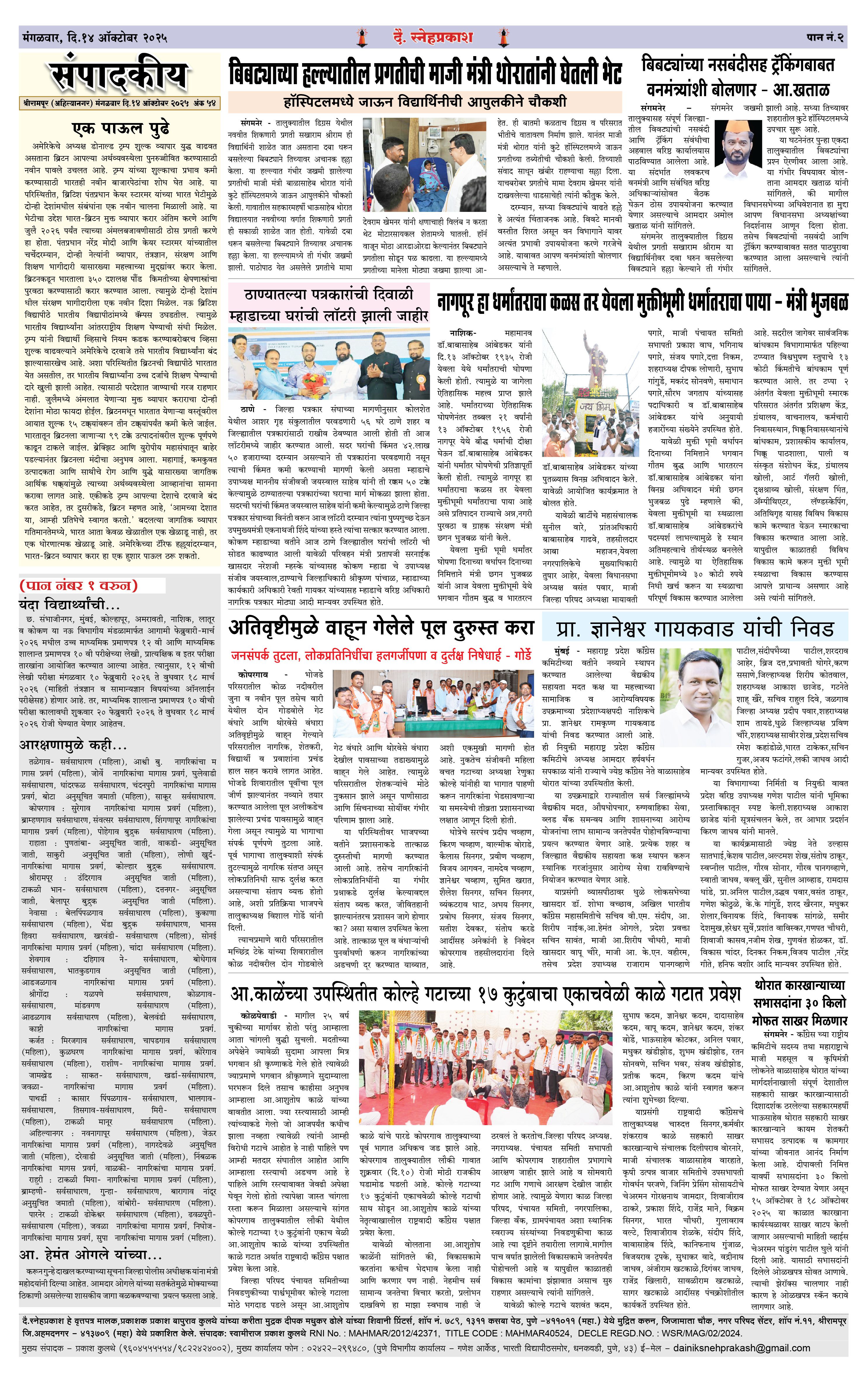 Daily Snehprakash (Marathi) Page: 2 October 14, 2025 Ahilyanagar-Pune-Nashik-shrirampur maharashtra 1 2 3 4 Page 1Page 2Page 3Page 4 × Daily Snehprakash (Marathi) 1-4 colour1-4 colour21-4 colour31-4 colour4 << First << 2 >> Last >> Page no 1Page no 2Page no 3Page no 4