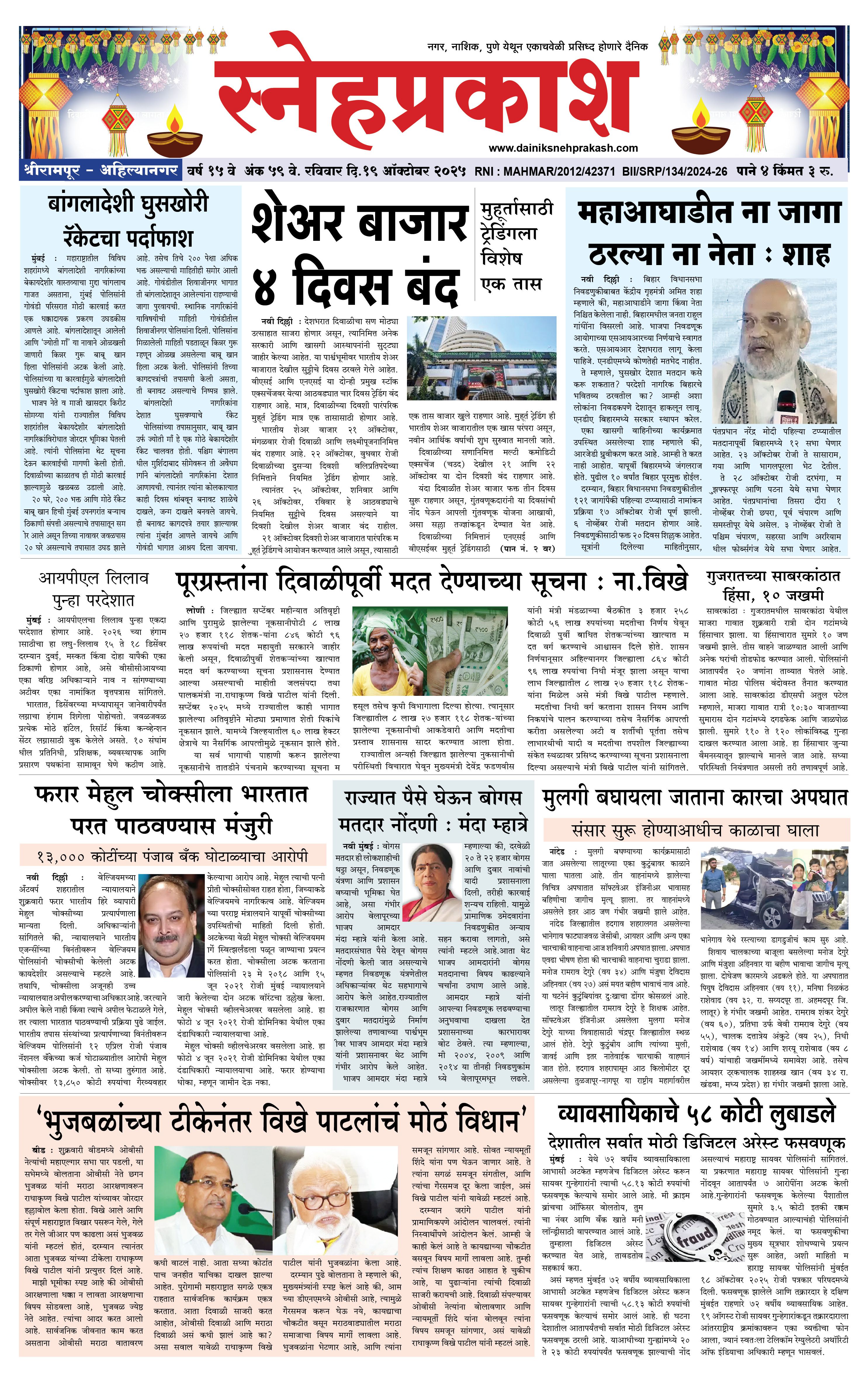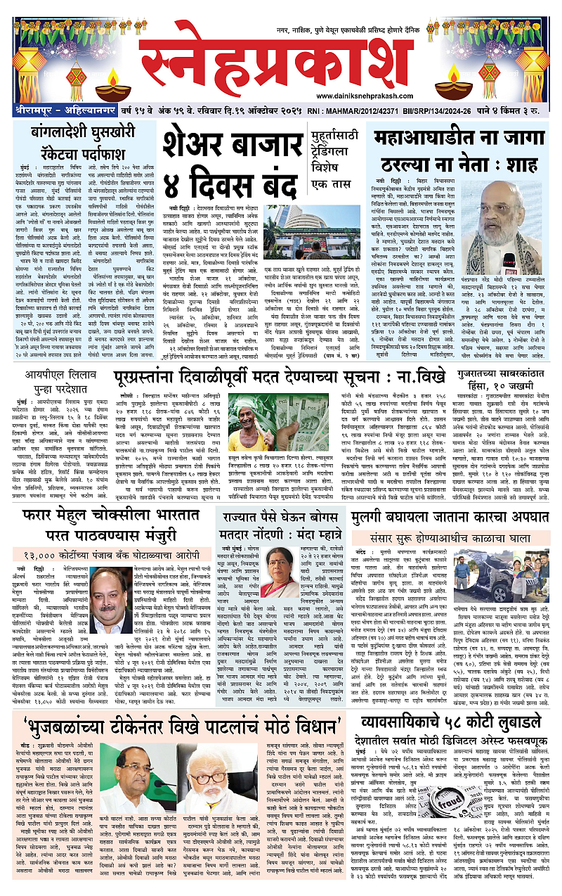 Daily Snehprakash (Marathi) October 19, 2025 Ahilyanagar-Pune-Nashik-shrirampur maharashtra 1 2 3 4 Page 1Page 2Page 3Page 4 × Daily Snehprakash (Marathi) 1-4 colour1-4 colour21-4 colour31-4 colour4 << First << 1 >> Last >> Page no 1Page no 2Page no 3Page no 4