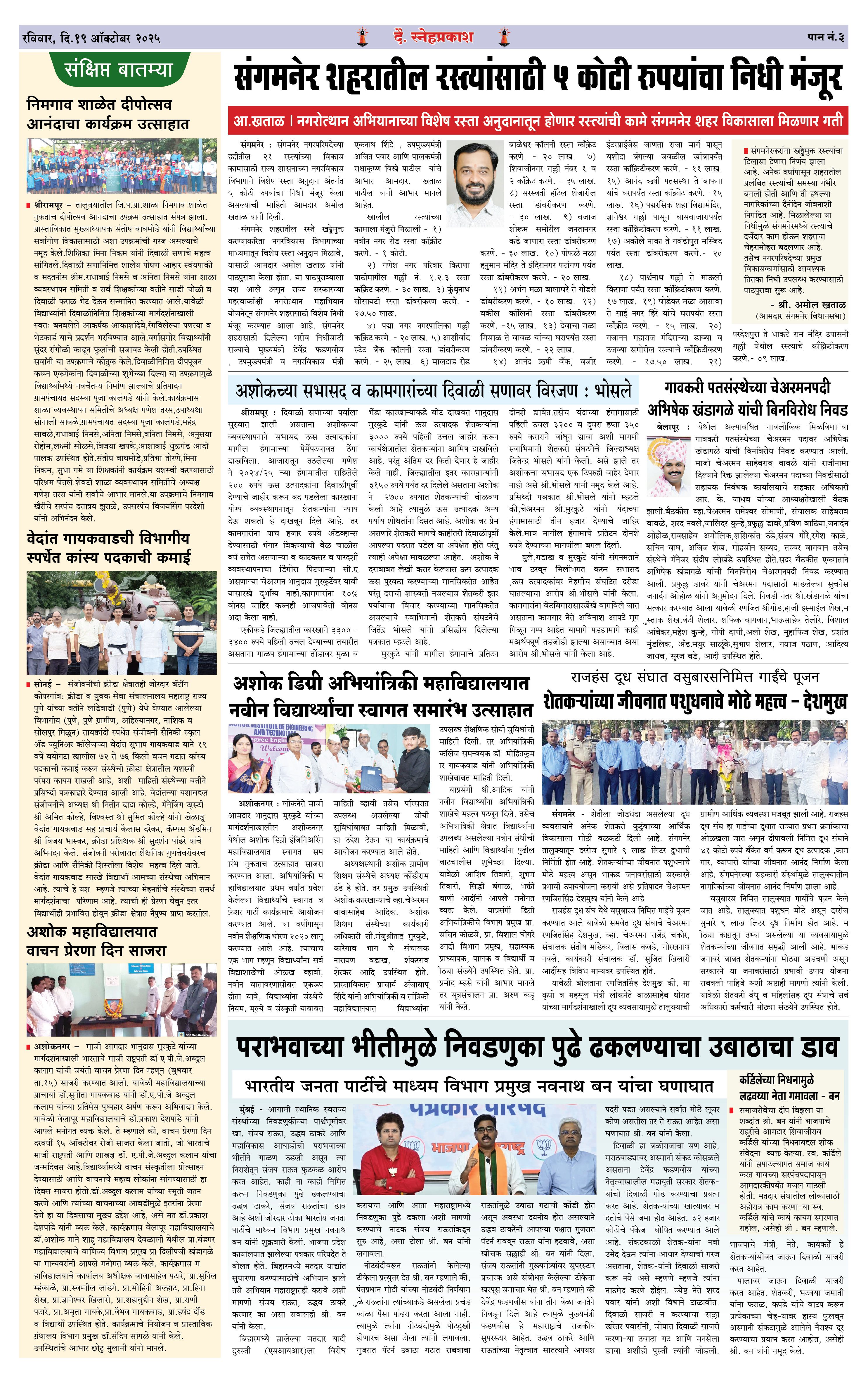 Daily Snehprakash (Marathi) Page: 3 October 19, 2025 Ahilyanagar-Pune-Nashik-shrirampur maharashtra 1 2 3 4 Page 1Page 2Page 3Page 4 × Daily Snehprakash (Marathi) 1-4 colour1-4 colour21-4 colour31-4 colour4 << First << 3 >> Last >> Page no 1Page no 2Page no 3Page no 4