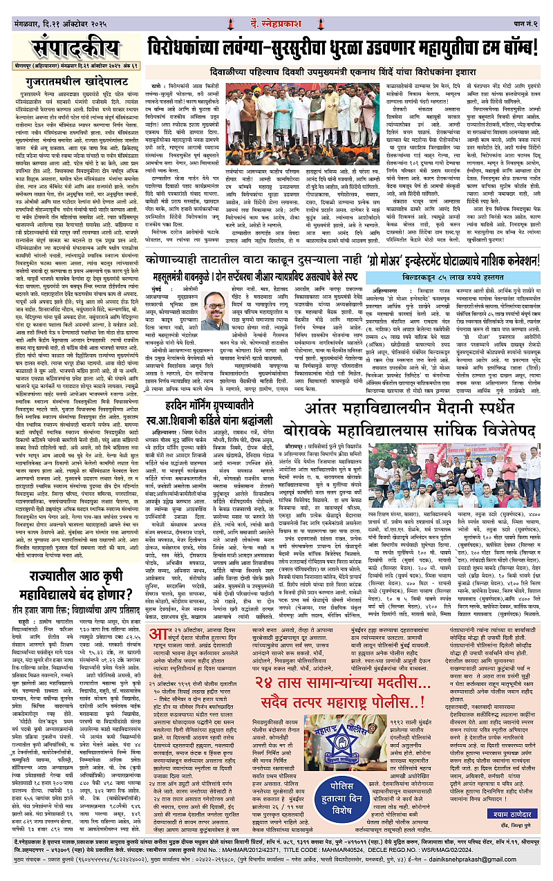 Daily Snehprakash (Marathi) Page: 2 October 21, 2025 Ahilyanagar-Pune-Nashik-shrirampur maharashtra 1 2 3 4 Page 1Page 2Page 3Page 4 × Daily Snehprakash (Marathi) 1-41-421-431-44 << First << 2 >> Last >> Page no 1Page no 2Page no 3Page no 4