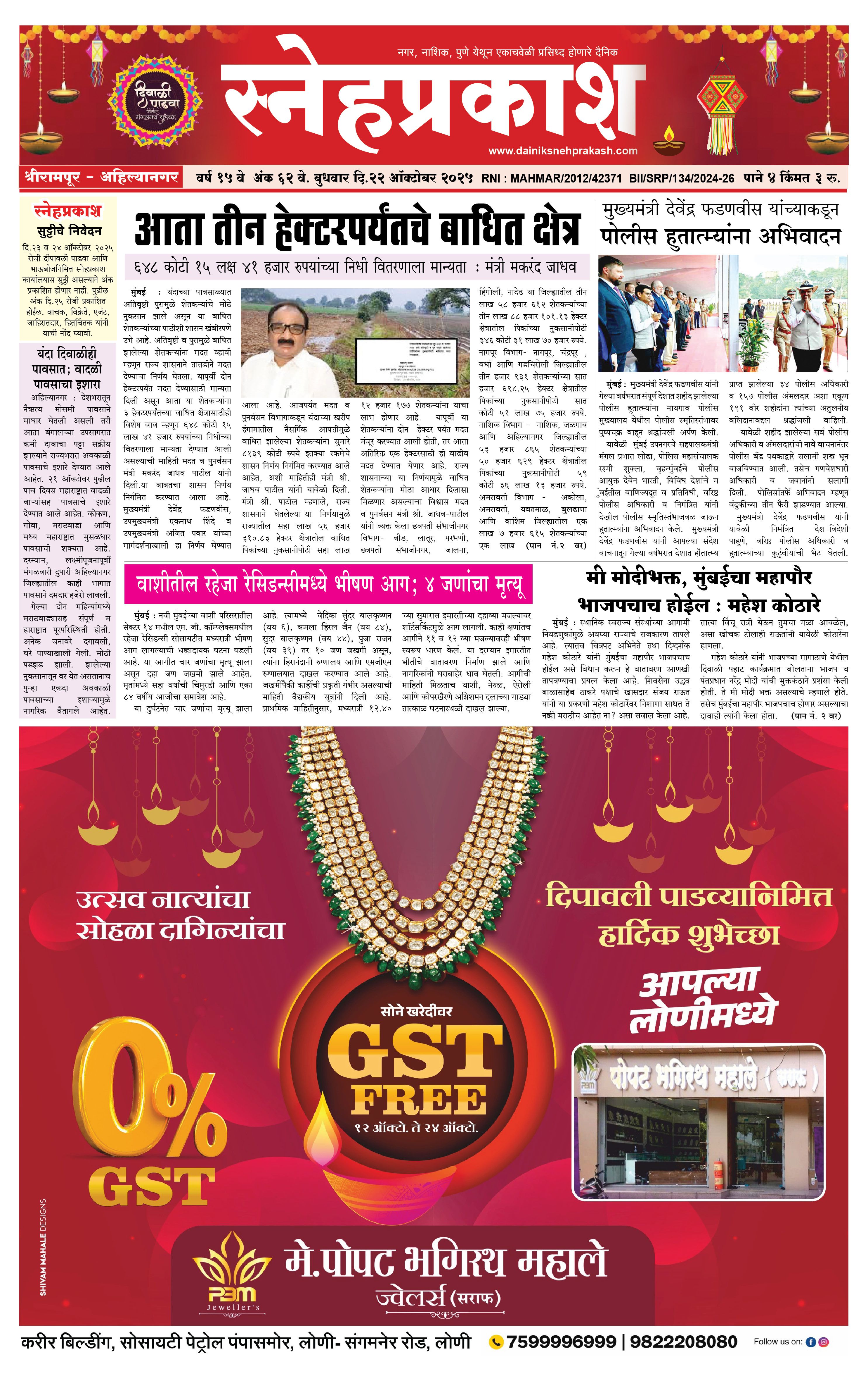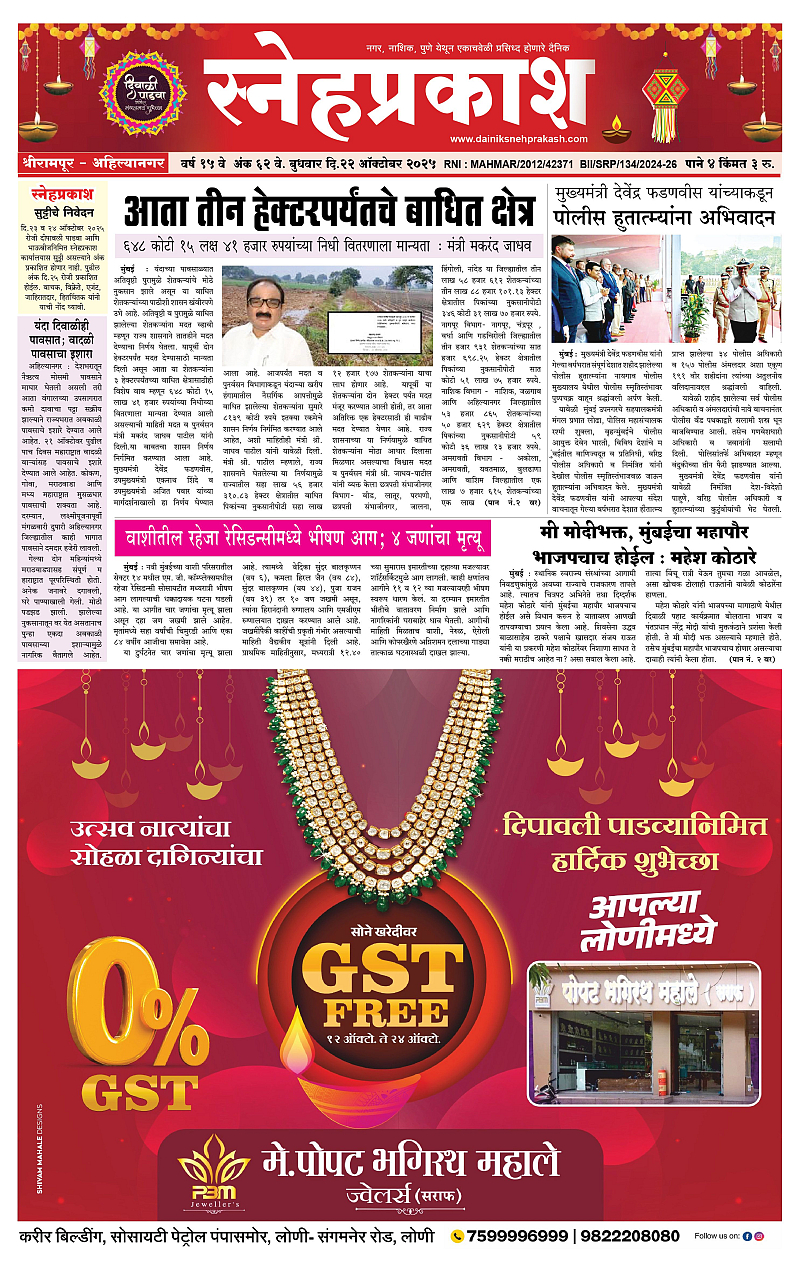 Daily Snehprakash (Marathi) October 22, 2025 Ahilyanagar-Pune-Nashik-shrirampur maharashtra 1 2 3 4 Page 1Page 2Page 3Page 4 × Daily Snehprakash (Marathi) 1-41-421-431-44 << First << 1 >> Last >> Page no 1Page no 2Page no 3Page no 4
