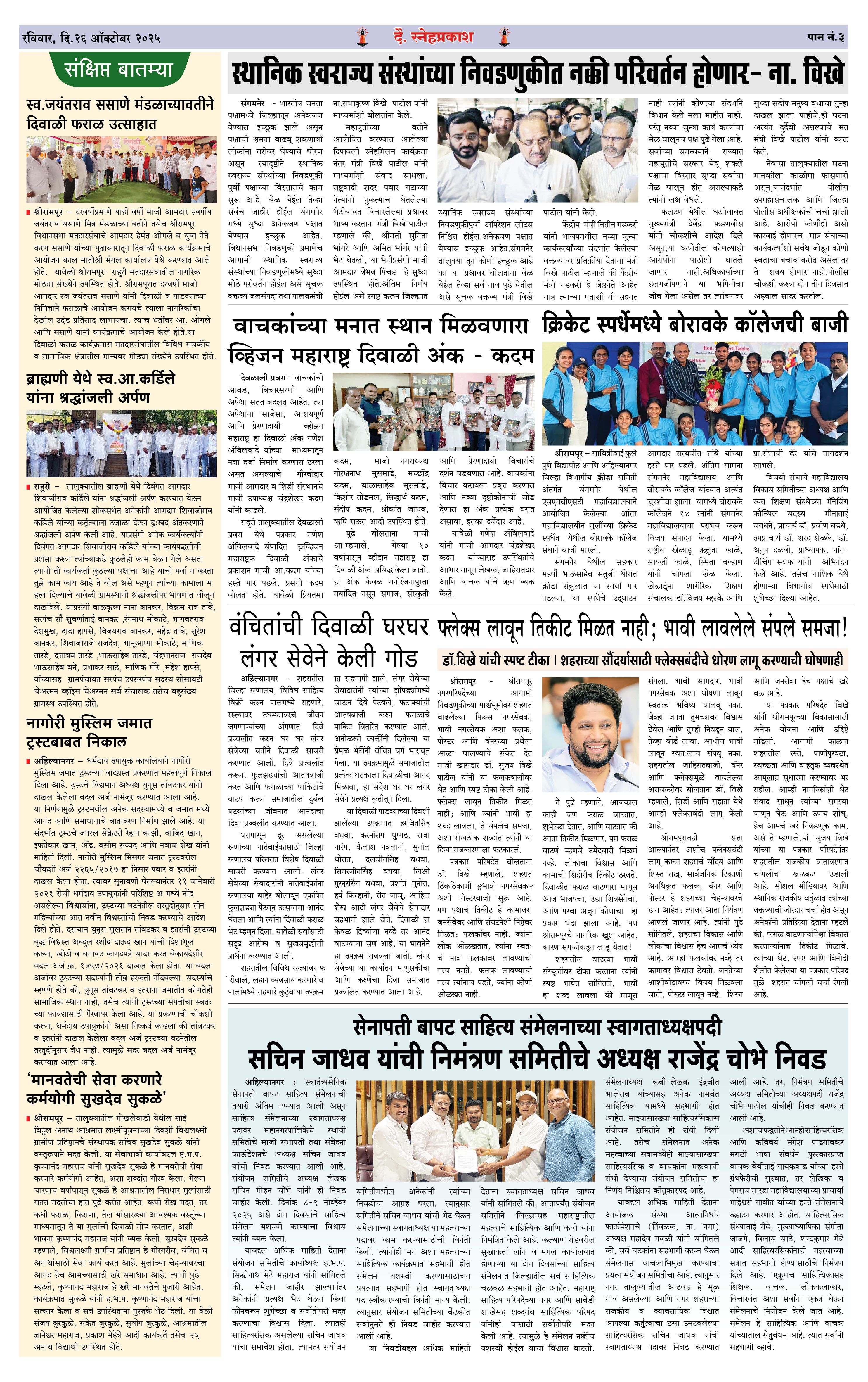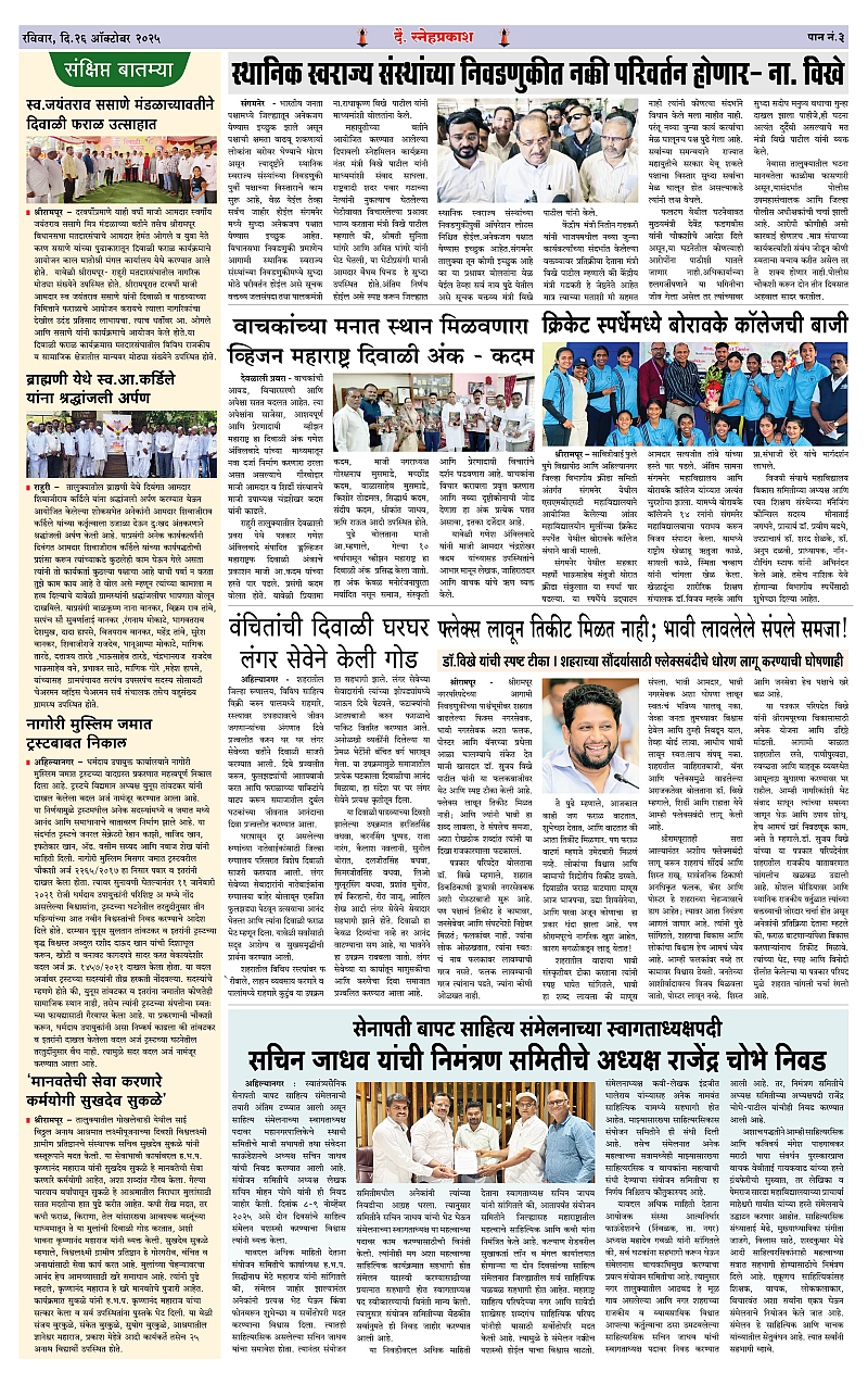 Daily Snehprakash (Marathi) Page: 3 October 26, 2025 Ahilyanagar-Pune-Nashik-shrirampur maharashtra 1 2 3 4 Page 1Page 2Page 3Page 4 × Daily Snehprakash (Marathi) 1-4 colour1-4 colour21-4 colour31-4 colour4 << First << 3 >> Last >> Page no 1Page no 2Page no 3Page no 4