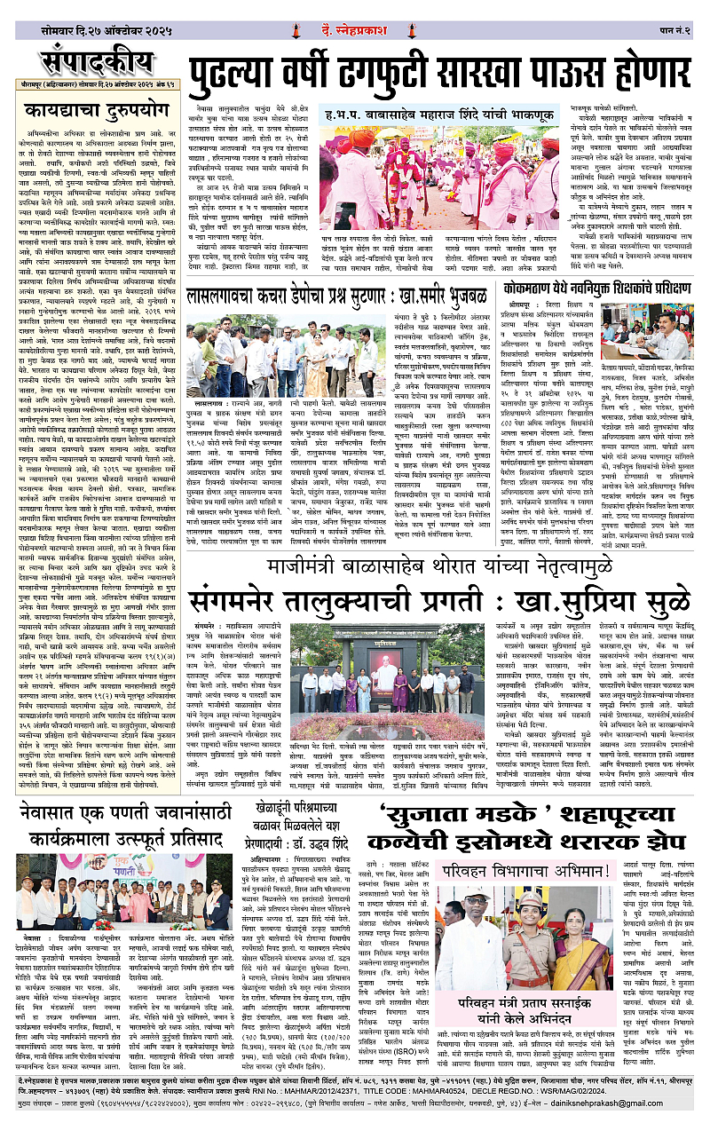 Daily Snehprakash (Marathi) Page: 2 October 27, 2025 Ahilyanagar-Pune-Nashik-shrirampur maharashtra 1 2 3 4 Page 1Page 2Page 3Page 4 × Daily Snehprakash (Marathi) Snehprakash 1-4 (27 Oct 2025) ColourSnehprakash 1-4 (27 Oct 2025) Colour2Snehprakash 1-4 (27 Oct 2025) Colour3Snehprakash 1-4 (27 Oct 2025) Colour4 << First << 2 >> Last >> Page no 1Page no 2Page no 3Page no 4