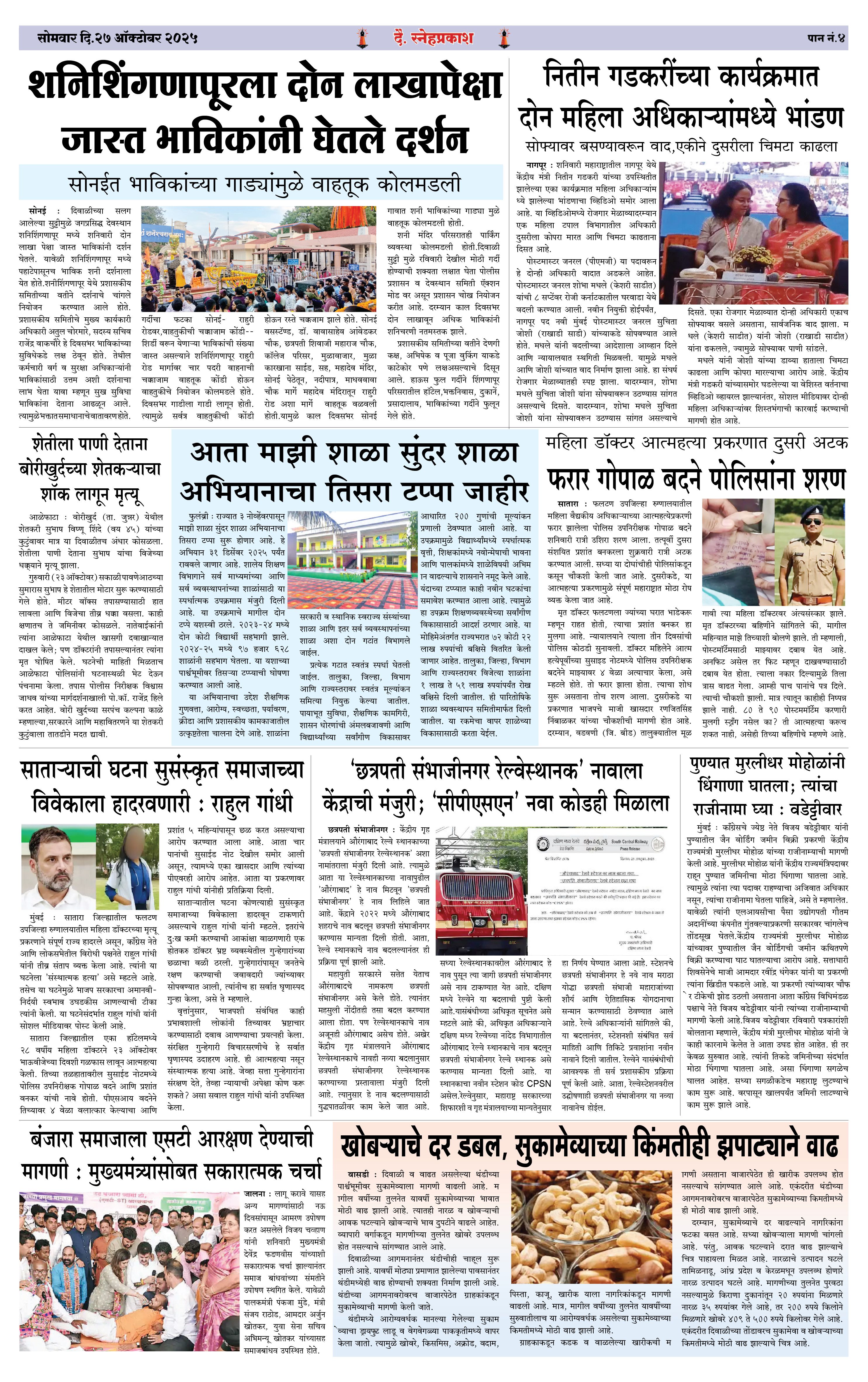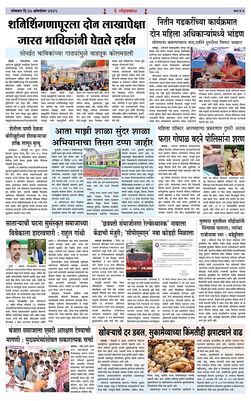 Daily Snehprakash (Marathi) Page: 4 October 27, 2025 Ahilyanagar-Pune-Nashik-shrirampur maharashtra 1 2 3 4 Page 1Page 2Page 3Page 4 × Daily Snehprakash (Marathi) Snehprakash 1-4 (27 Oct 2025) ColourSnehprakash 1-4 (27 Oct 2025) Colour2Snehprakash 1-4 (27 Oct 2025) Colour3Snehprakash 1-4 (27 Oct 2025) Colour4 << First << 4 >> Last >> Page no 1Page no 2Page no 3Page no 4
