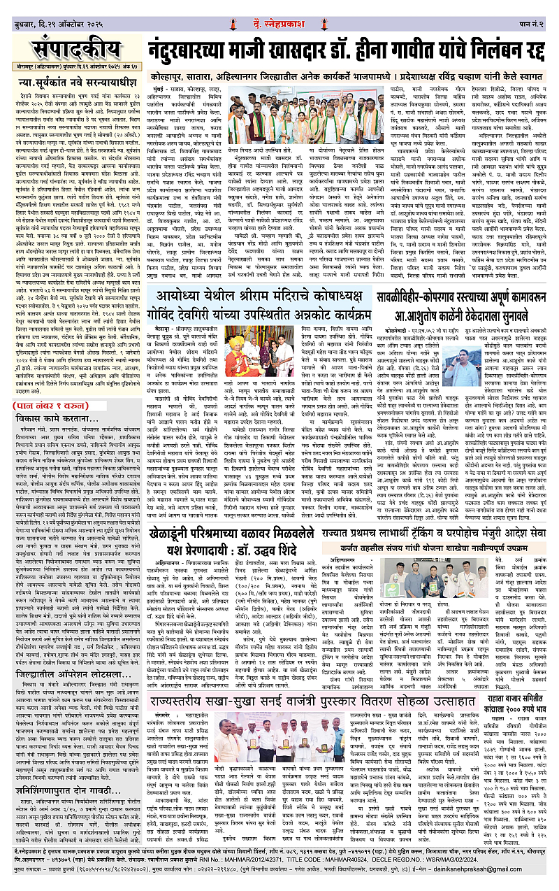 Daily Snehprakash (Marathi) Page: 2 October 29, 2025 Ahilyanagar-Pune-Nashik-shrirampur maharashtra 1 2 3 4 Page 1Page 2Page 3Page 4 × Daily Snehprakash (Marathi) 1-4 colour1-4 colour21-4 colour31-4 colour4 << First << 2 >> Last >> Page no 1Page no 2Page no 3Page no 4