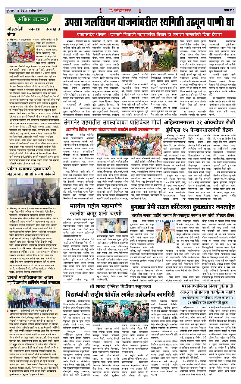 Daily Snehprakash (Marathi) Page: 3 October 29, 2025 Ahilyanagar-Pune-Nashik-shrirampur maharashtra 1 2 3 4 Page 1Page 2Page 3Page 4 × Daily Snehprakash (Marathi) 1-4 colour1-4 colour21-4 colour31-4 colour4 << First << 3 >> Last >> Page no 1Page no 2Page no 3Page no 4