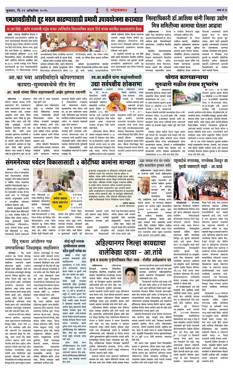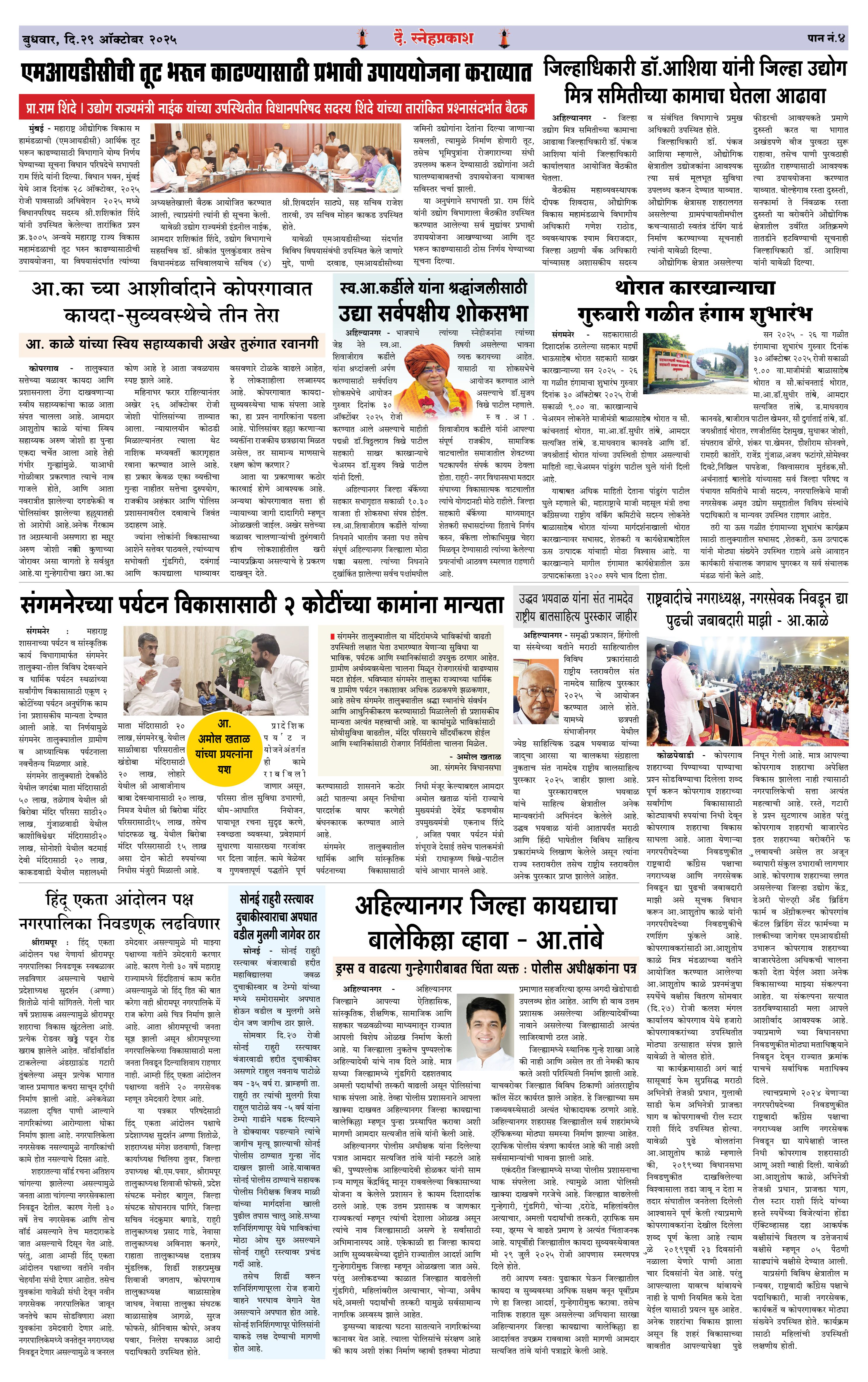 Daily Snehprakash (Marathi) Page: 4 October 29, 2025 Ahilyanagar-Pune-Nashik-shrirampur maharashtra 1 2 3 4 Page 1Page 2Page 3Page 4 × Daily Snehprakash (Marathi) 1-4 colour1-4 colour21-4 colour31-4 colour4 << First << 4 >> Last >> Page no 1Page no 2Page no 3Page no 4
