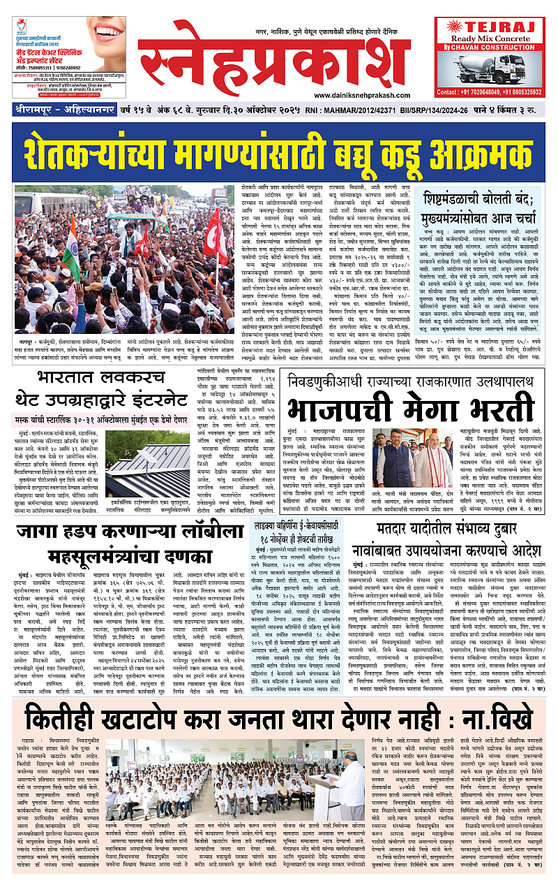 Daily Snehprakash (Marathi) October 30, 2025 Ahilyanagar-Pune-Nashik-shrirampur maharashtra 1 2 3 4 Page 1Page 2Page 3Page 4 × Daily Snehprakash (Marathi) 1-41-421-431-44 << First << 1 >> Last >> Page no 1Page no 2Page no 3Page no 4