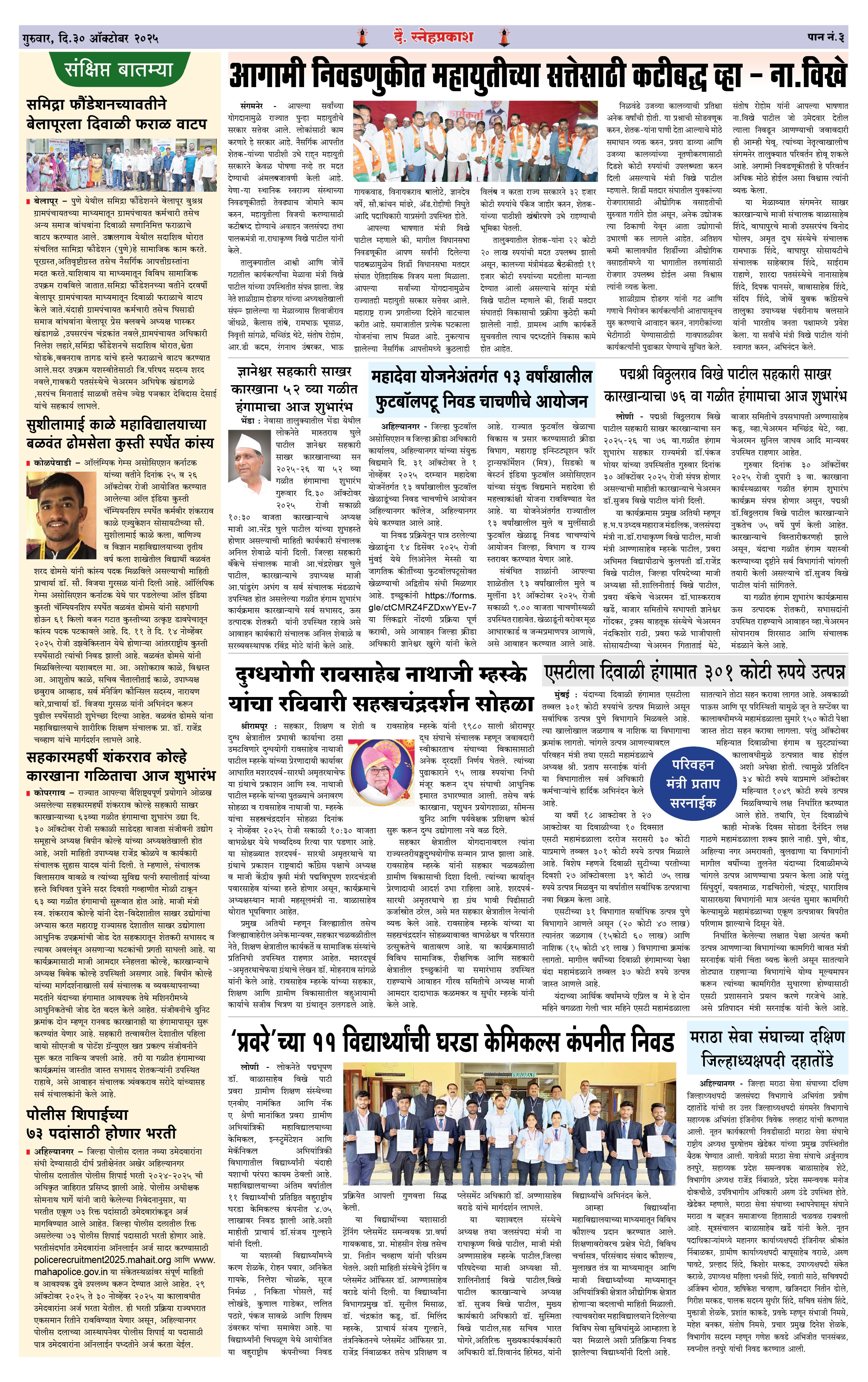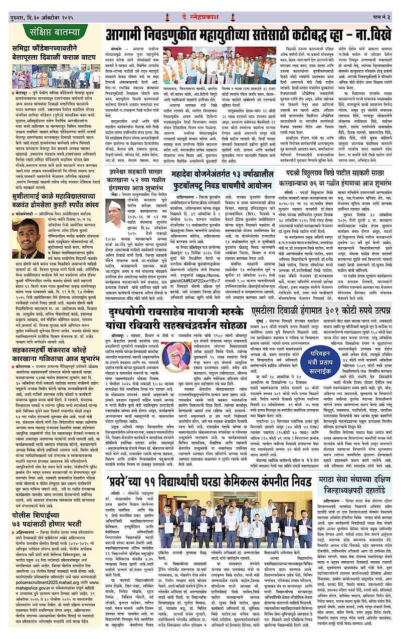 Daily Snehprakash (Marathi) Page: 3 October 30, 2025 Ahilyanagar-Pune-Nashik-shrirampur maharashtra 1 2 3 4 Page 1Page 2Page 3Page 4 × Daily Snehprakash (Marathi) 1-41-421-431-44 << First << 3 >> Last >> Page no 1Page no 2Page no 3Page no 4
