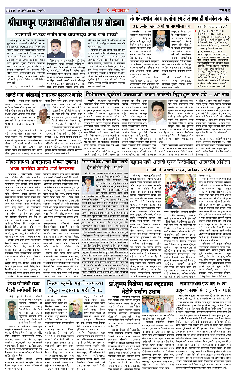 Daily Snehprakash (Marathi) Page: 4 November 02, 2025 Ahilyanagar-Pune-Nashik-shrirampur maharashtra 1 2 3 4 Page 1Page 2Page 3Page 4 × Daily Snehprakash (Marathi) 1-41-421-431-44 << First << 4 >> Last >> Page no 1Page no 2Page no 3Page no 4