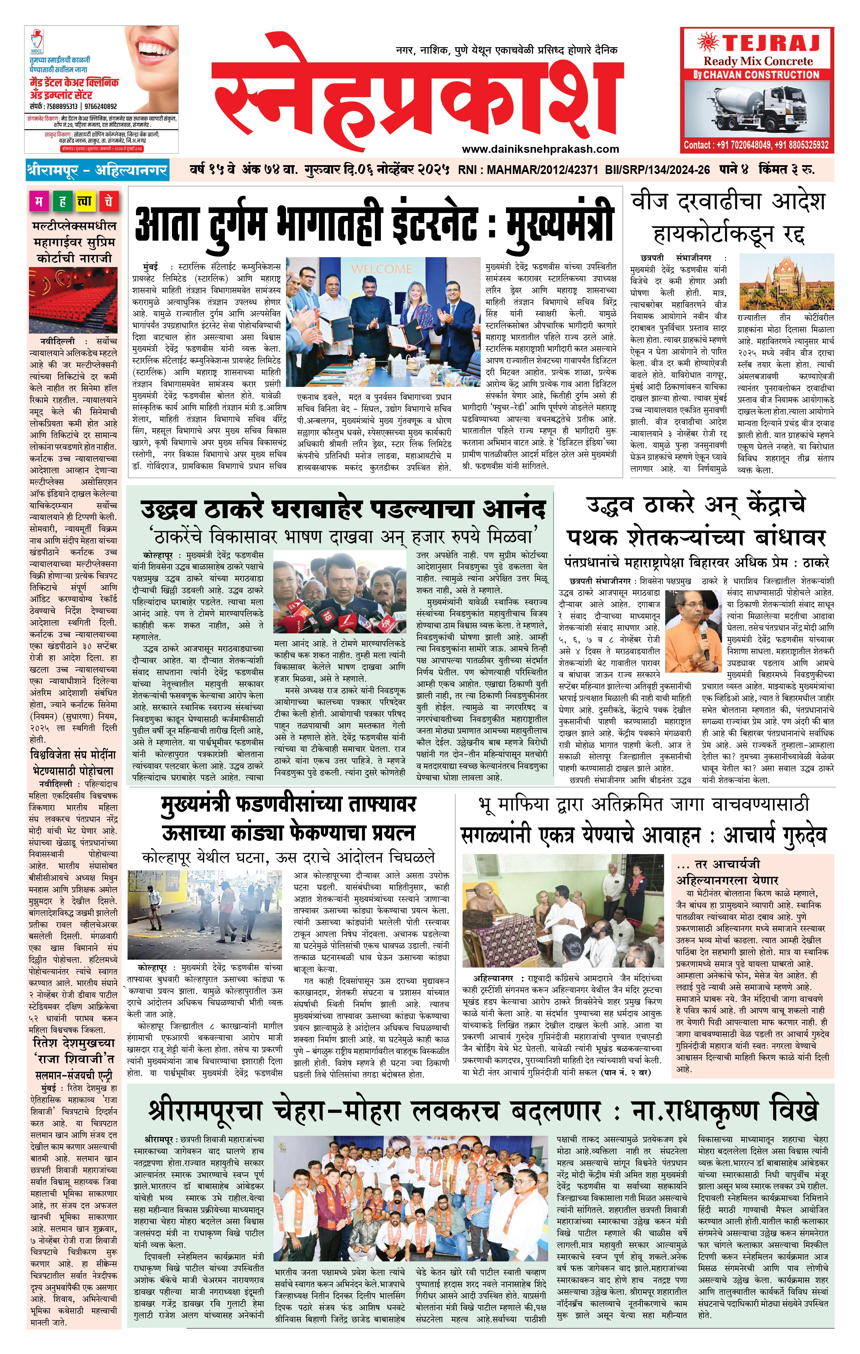 Daily Snehprakash (Marathi) November 06, 2025 Ahilyanagar-Pune-Nashik-shrirampur maharashtra 1 2 3 4 Page 1Page 2Page 3Page 4 × Daily Snehprakash (Marathi) 1-4 colour1-4 colour21-4 colour31-4 colour4 << First << 1 >> Last >> Page no 1Page no 2Page no 3Page no 4