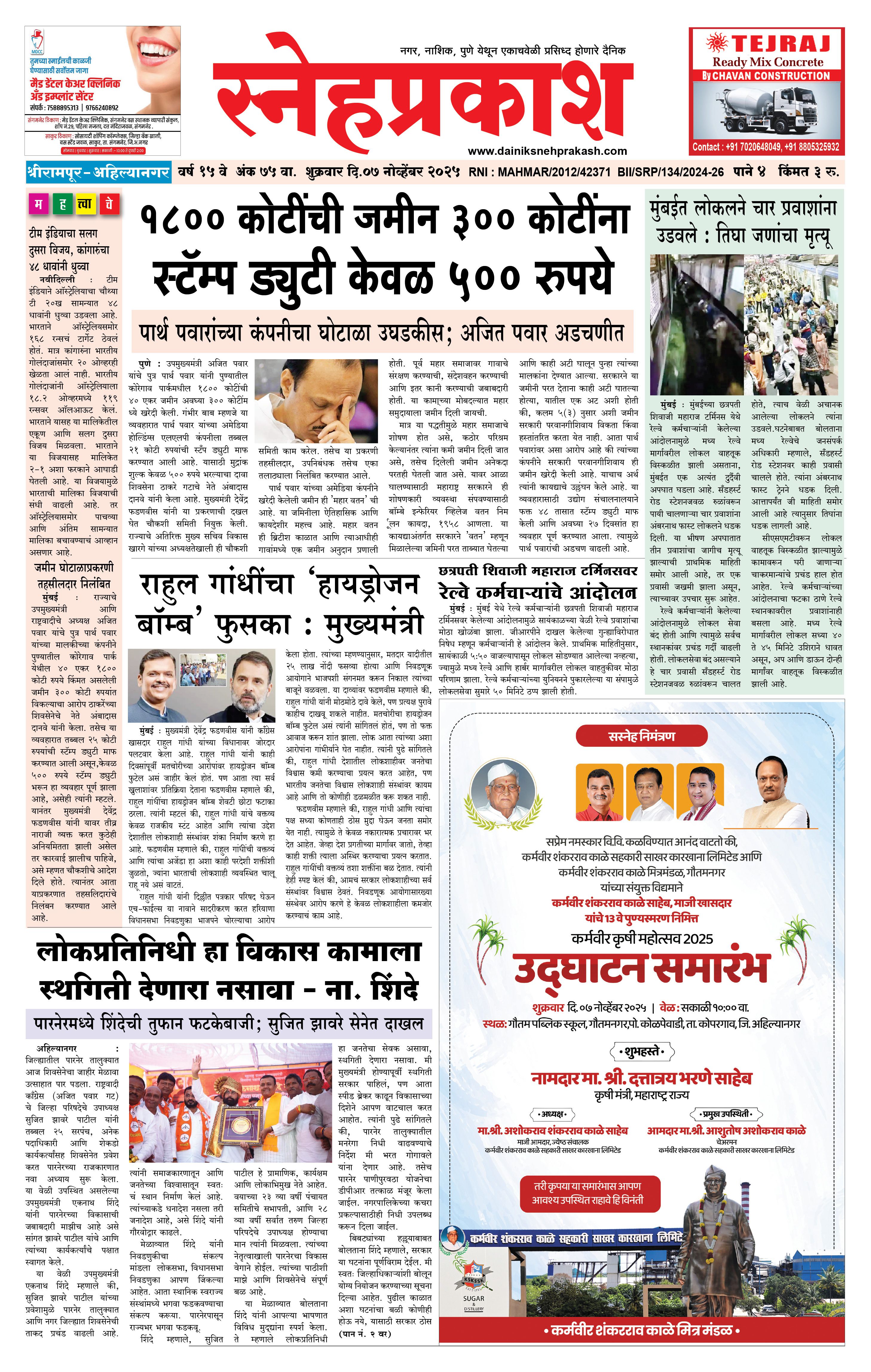 Daily Snehprakash (Marathi) November 07, 2025 Ahilyanagar-Pune-Nashik-shrirampur maharashtra 1 2 3 4 Page 1Page 2Page 3Page 4 × Daily Snehprakash (Marathi) 1-4 colour1-4 colour21-4 colour31-4 colour4 << First << 1 >> Last >> Page no 1Page no 2Page no 3Page no 4