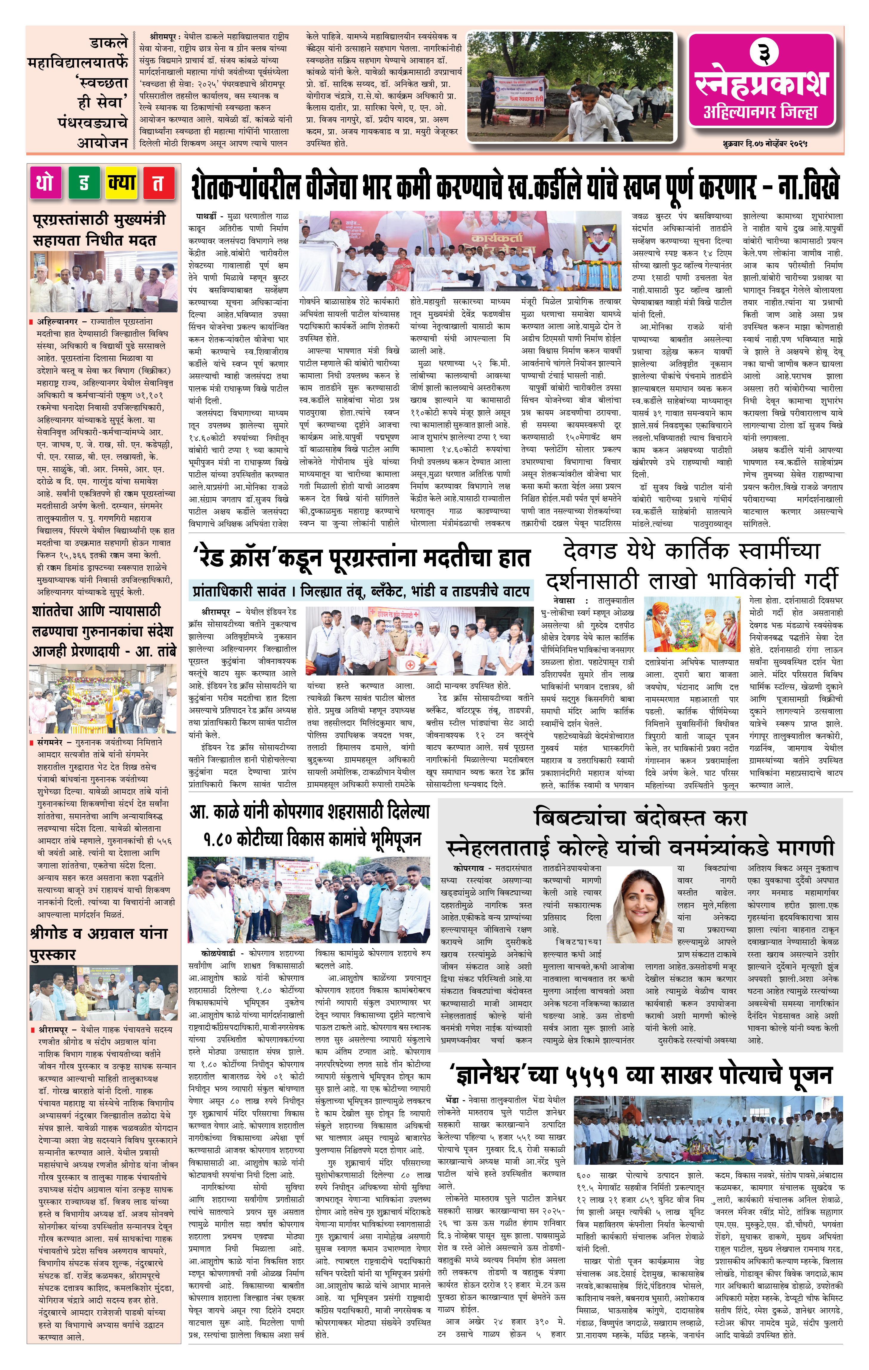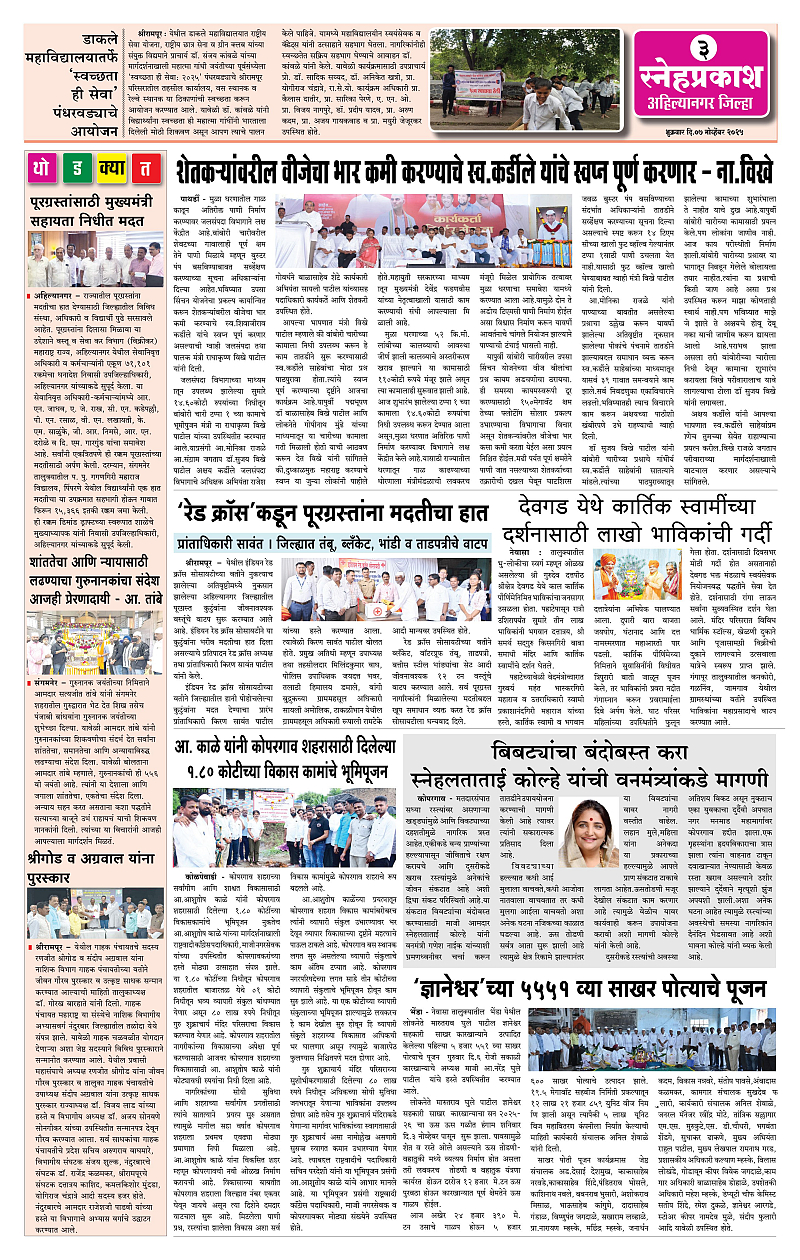 Daily Snehprakash (Marathi) Page: 3 November 07, 2025 Ahilyanagar-Pune-Nashik-shrirampur maharashtra 1 2 3 4 Page 1Page 2Page 3Page 4 × Daily Snehprakash (Marathi) 1-4 colour1-4 colour21-4 colour31-4 colour4 << First << 3 >> Last >> Page no 1Page no 2Page no 3Page no 4