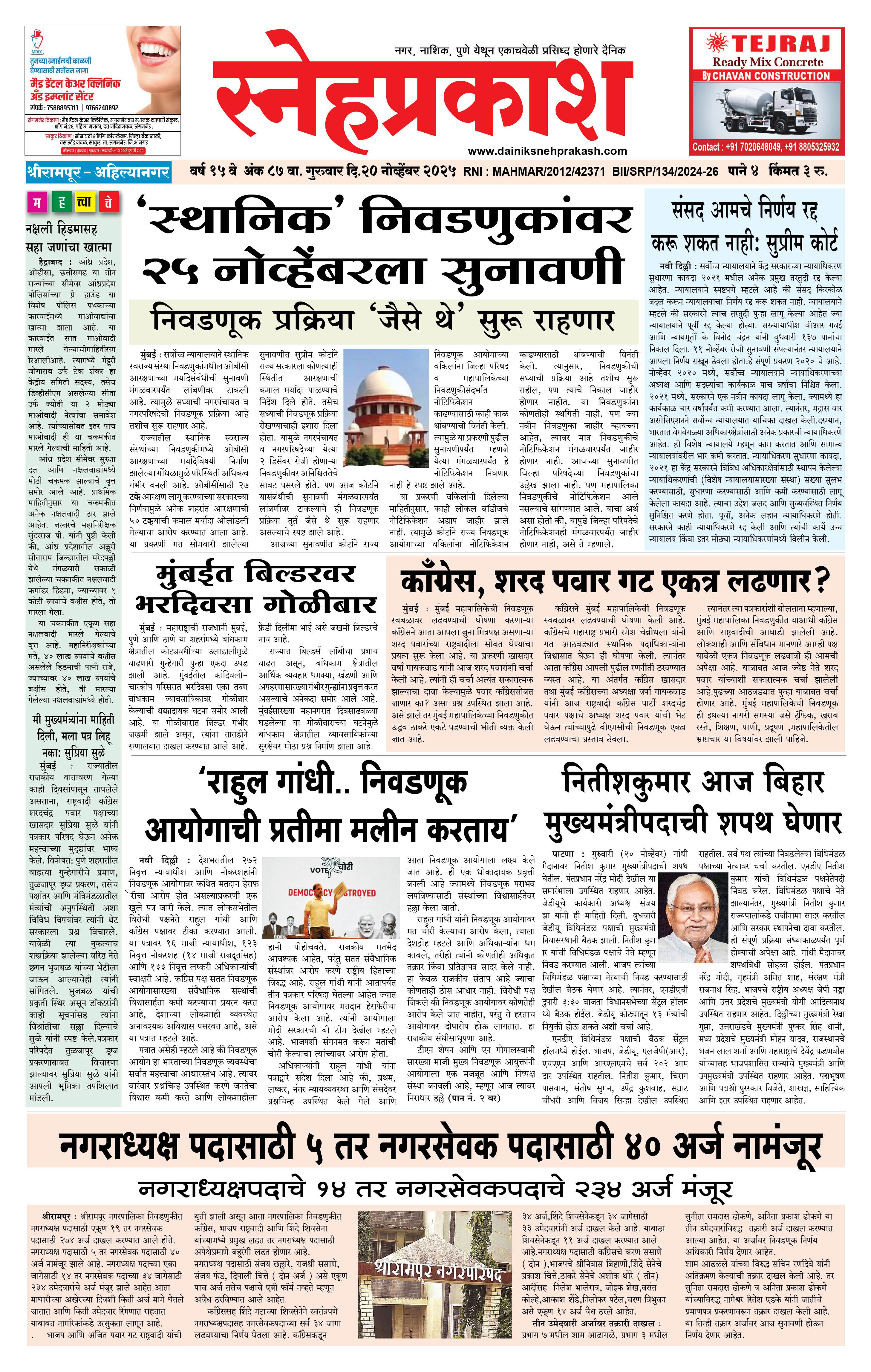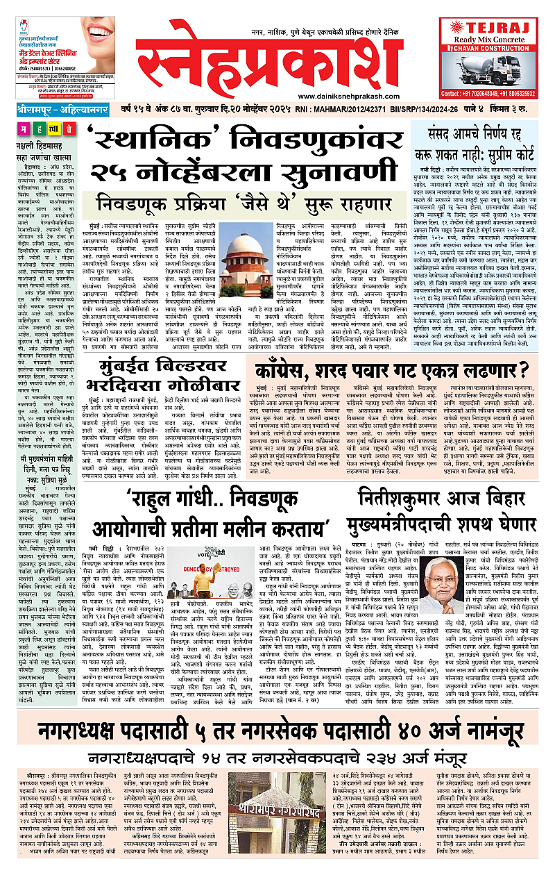 Daily Snehprakash (Marathi) November 20, 2025 Ahilyanagar-Pune-Nashik-shrirampur maharashtra 1 2 3 4 Page 1Page 2Page 3Page 4 × Daily Snehprakash (Marathi) 1-11-121-131-14 << First << 1 >> Last >> Page no 1Page no 2Page no 3Page no 4