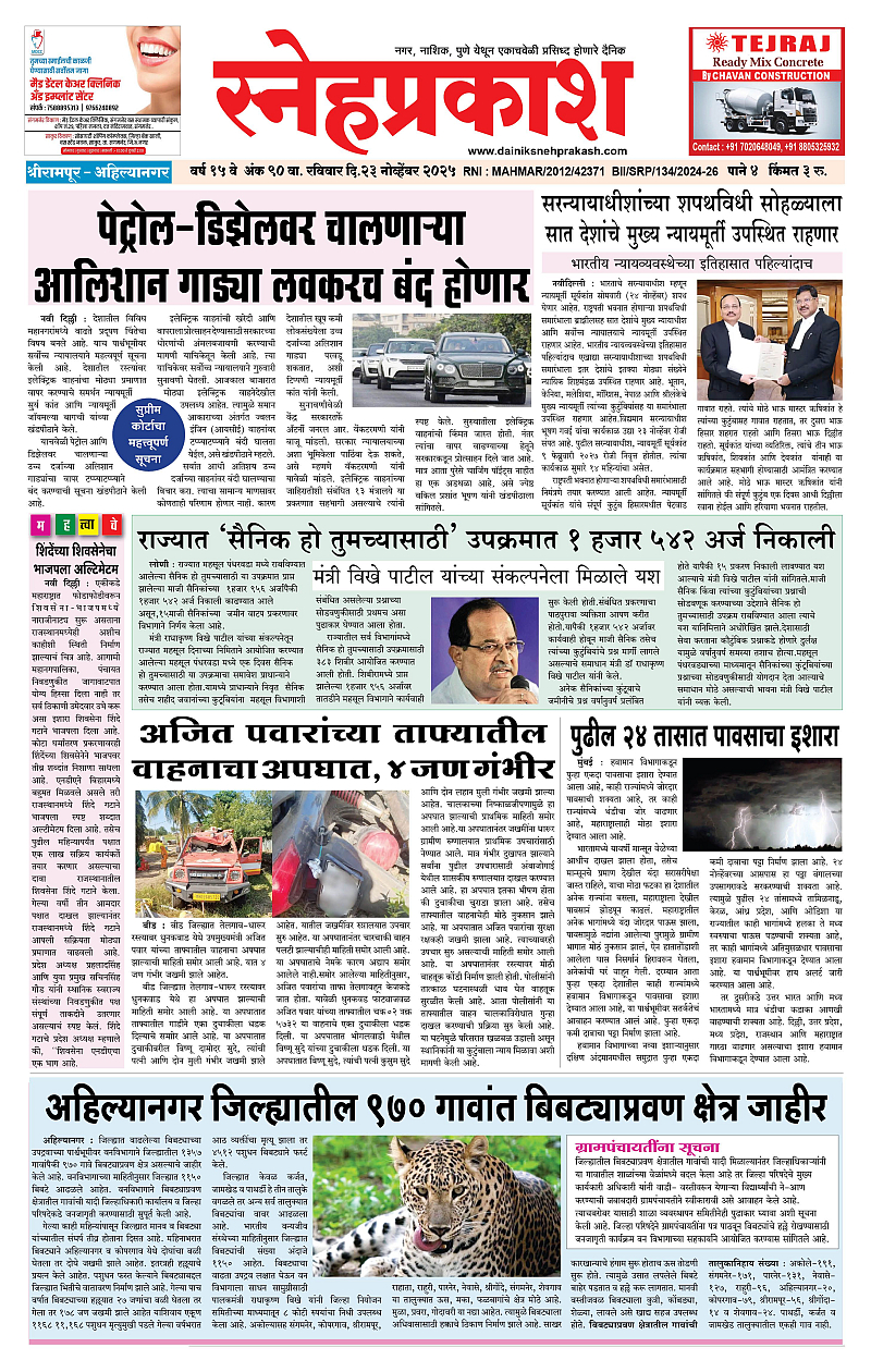 Daily Snehprakash (Marathi) November 23, 2025 Ahilyanagar-Pune-Nashik-shrirampur maharashtra 1 2 3 4 Page 1Page 2Page 3Page 4 × Daily Snehprakash (Marathi) 1-11-121-131-14 << First << 1 >> Last >> Page no 1Page no 2Page no 3Page no 4