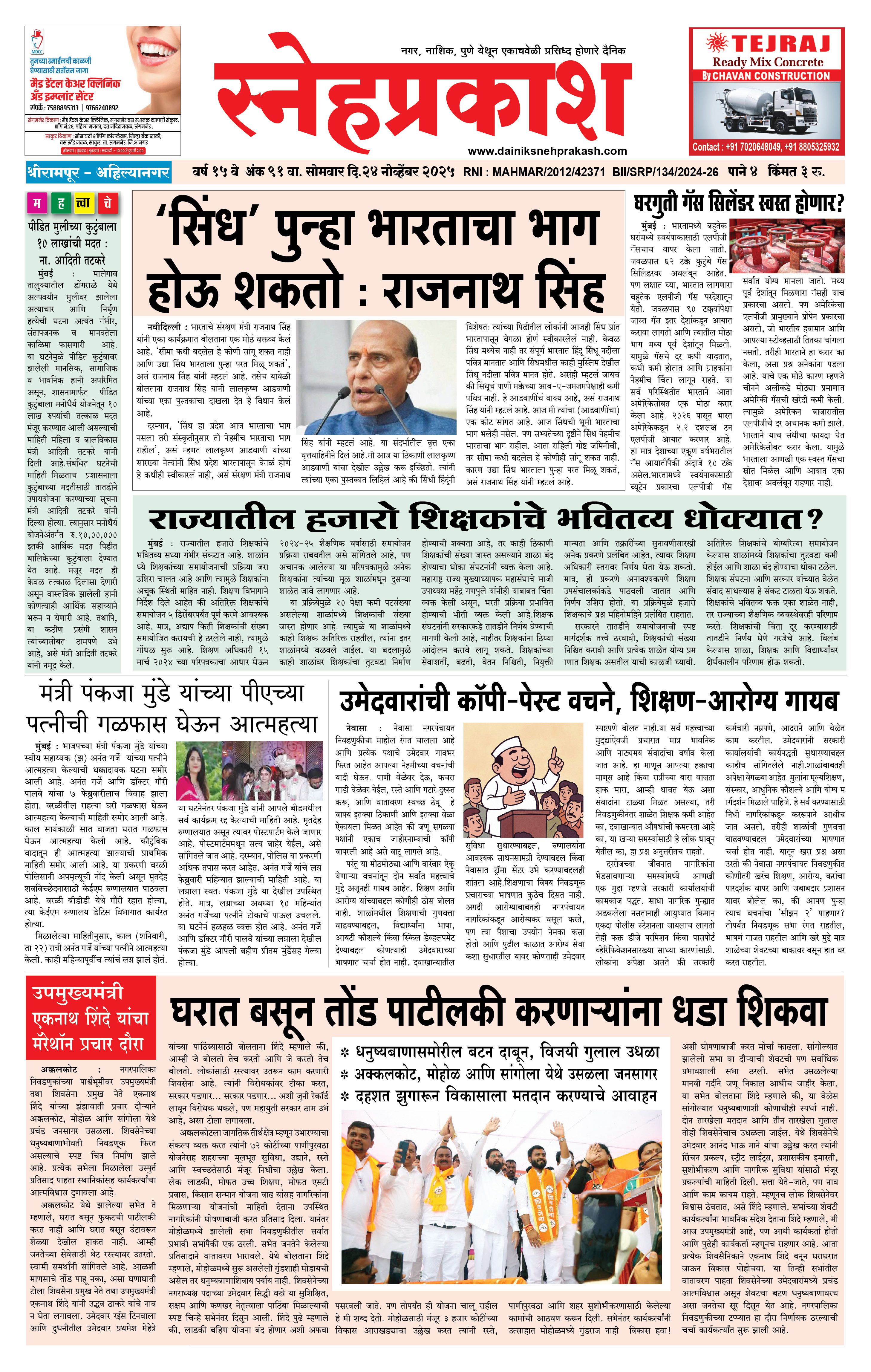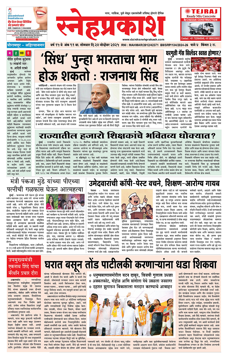 Daily Snehprakash (Marathi) November 24, 2025 Ahilyanagar-Pune-Nashik-shrirampur maharashtra 1 2 3 4 Page 1Page 2Page 3Page 4 × Daily Snehprakash (Marathi) 1 New1-4 Snehprakash (24 Nov 2025) Black21-4 Snehprakash (24 Nov 2025) Black31-4 Snehprakash (24 Nov 2025) Black4 << First << 1 >> Last >> Page no 1Page no 2Page no 3Page no 4