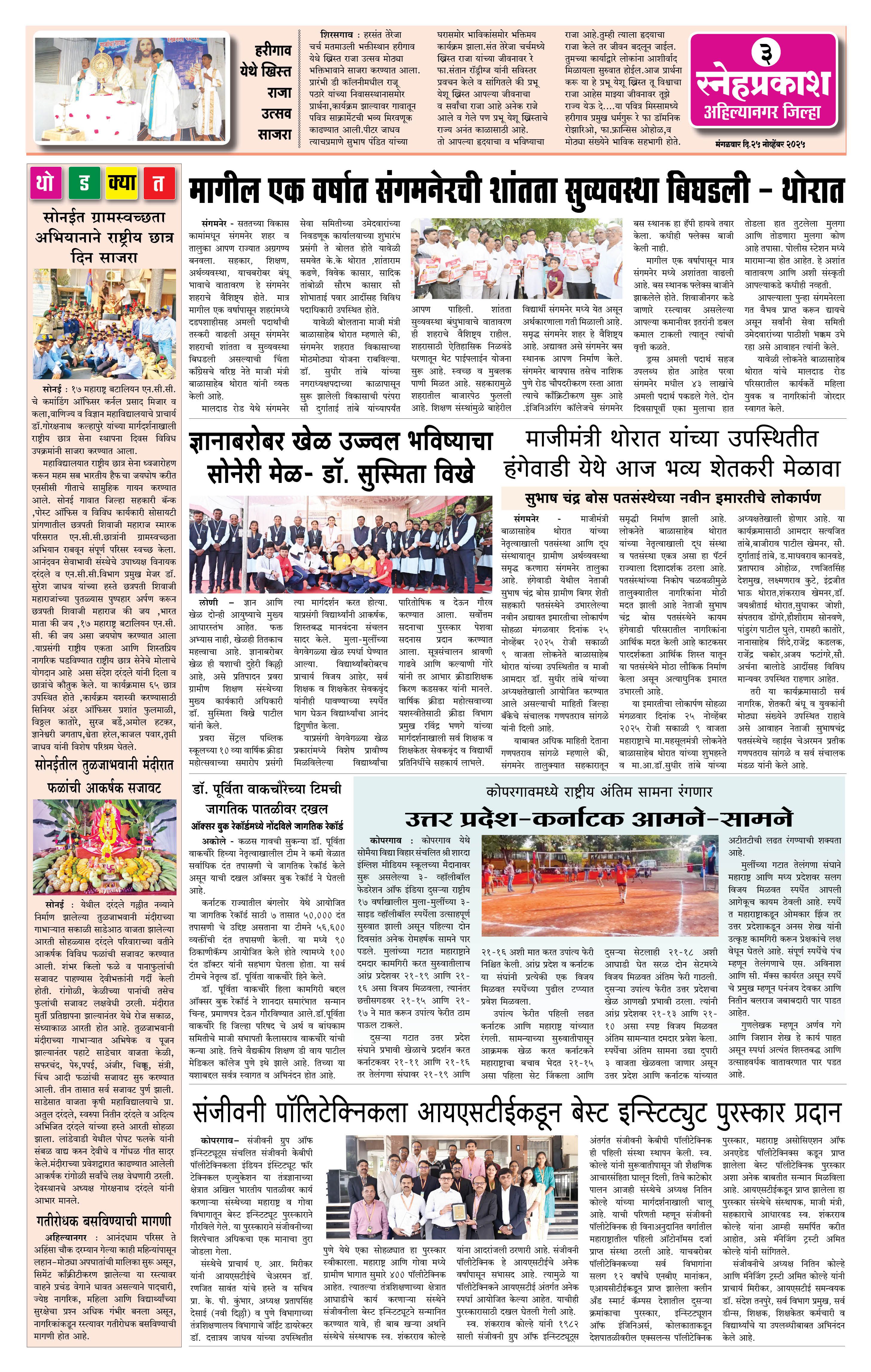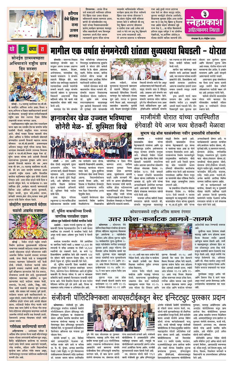 Daily Snehprakash (Marathi) Page: 3 November 25, 2025 Ahilyanagar-Pune-Nashik-shrirampur maharashtra 1 2 3 4 Page 1Page 2Page 3Page 4 × Daily Snehprakash (Marathi) 1-11-121-131-14 << First << 3 >> Last >> Page no 1Page no 2Page no 3Page no 4