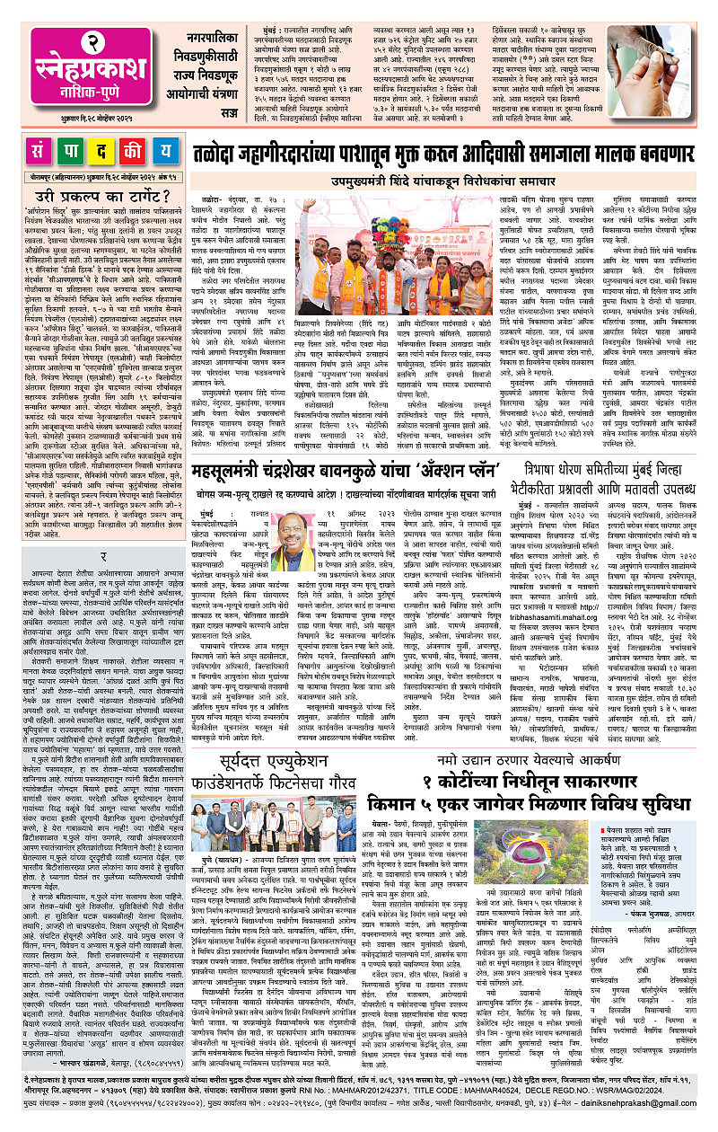 Daily Snehprakash (Marathi) Page: 2 November 28, 2025 Ahilyanagar-Pune-Nashik-shrirampur maharashtra 1 2 3 4 Page 1Page 2Page 3Page 4 × Daily Snehprakash (Marathi) 1-41-421-431-44 << First << 2 >> Last >> Page no 1Page no 2Page no 3Page no 4