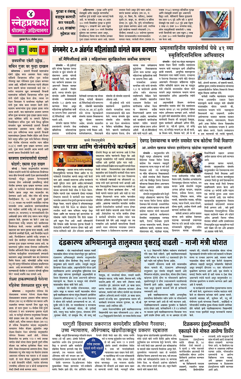 Daily Snehprakash (Marathi) Page: 4 November 28, 2025 Ahilyanagar-Pune-Nashik-shrirampur maharashtra 1 2 3 4 Page 1Page 2Page 3Page 4 × Daily Snehprakash (Marathi) 1-41-421-431-44 << First << 4 >> Last >> Page no 1Page no 2Page no 3Page no 4