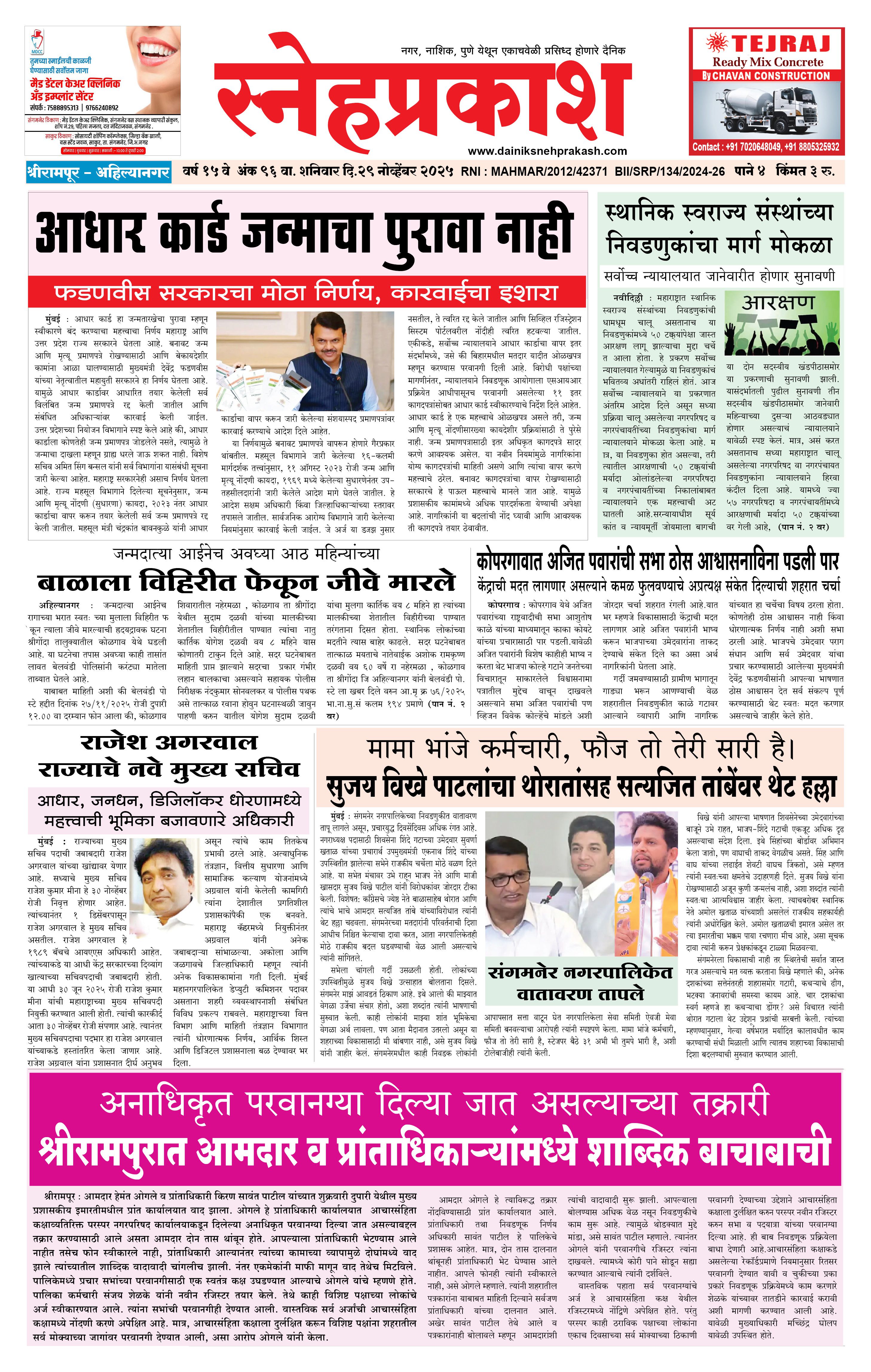 Daily Snehprakash (Marathi) November 29, 2025 Ahilyanagar-Pune-Nashik-shrirampur maharashtra 1 2 3 4 Page 1Page 2Page 3Page 4 × Daily Snehprakash (Marathi) 1-4 Snehprakash Black (29 Nov)1-4 Snehprakash Black (29 Nov)21-4 Snehprakash Black (29 Nov)31-4 Snehprakash Black (29 Nov)4 << First << 1 >> Last >> Page no 1Page no 2Page no 3Page no 4