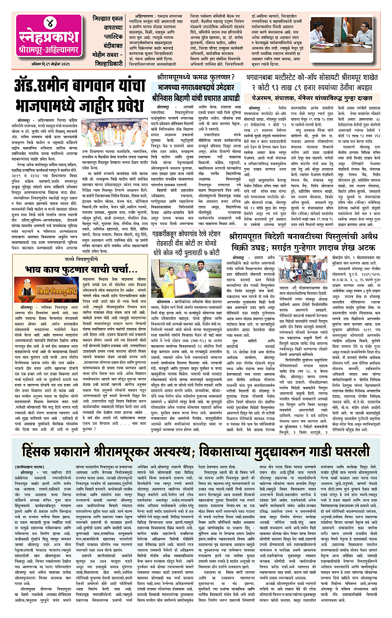 Daily Snehprakash (Marathi) Page: 4 November 29, 2025 Ahilyanagar-Pune-Nashik-shrirampur maharashtra 1 2 3 4 Page 1Page 2Page 3Page 4 × Daily Snehprakash (Marathi) 1-4 Snehprakash Black (29 Nov)1-4 Snehprakash Black (29 Nov)21-4 Snehprakash Black (29 Nov)31-4 Snehprakash Black (29 Nov)4 << First << 4 >> Last >> Page no 1Page no 2Page no 3Page no 4