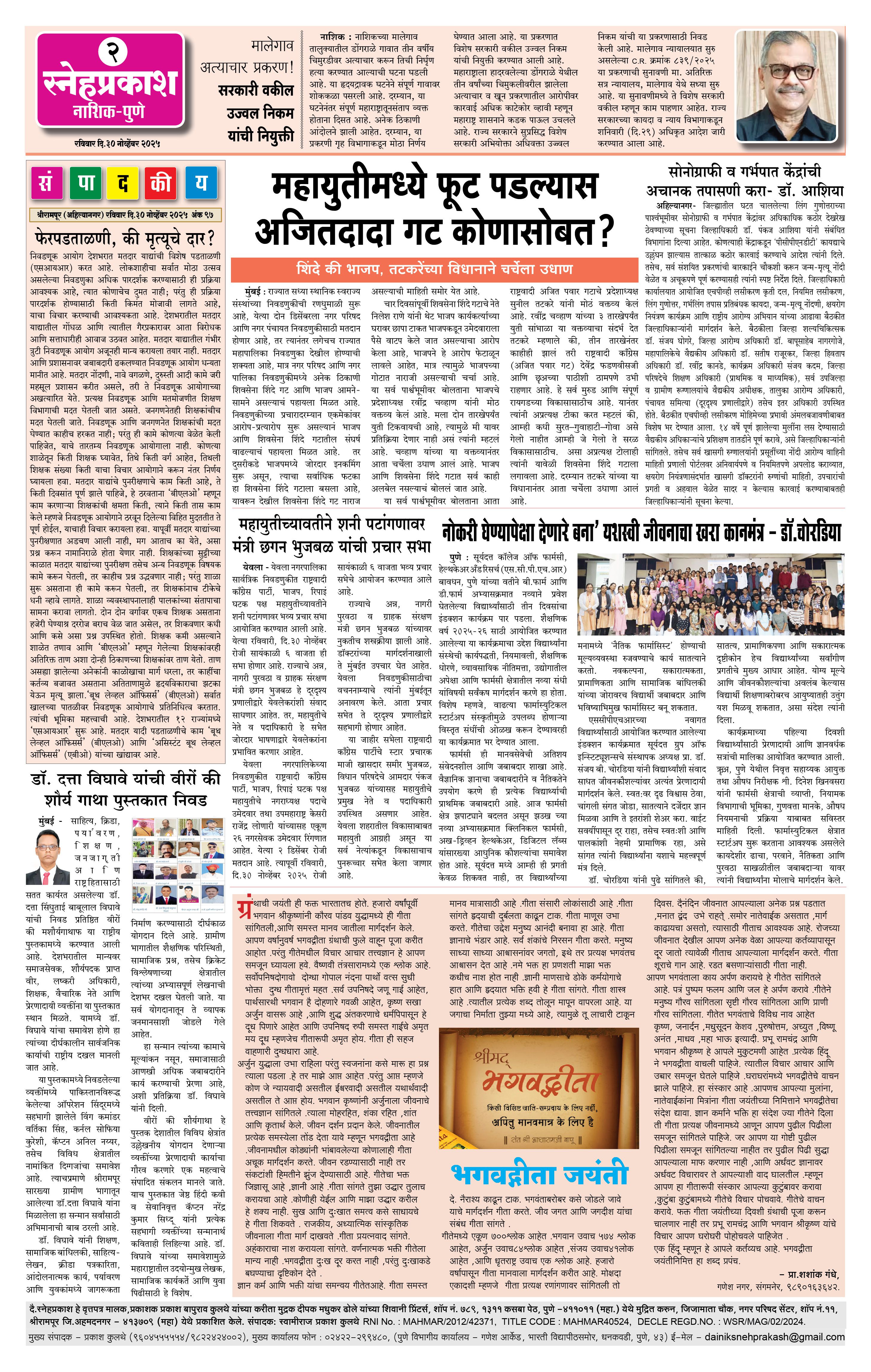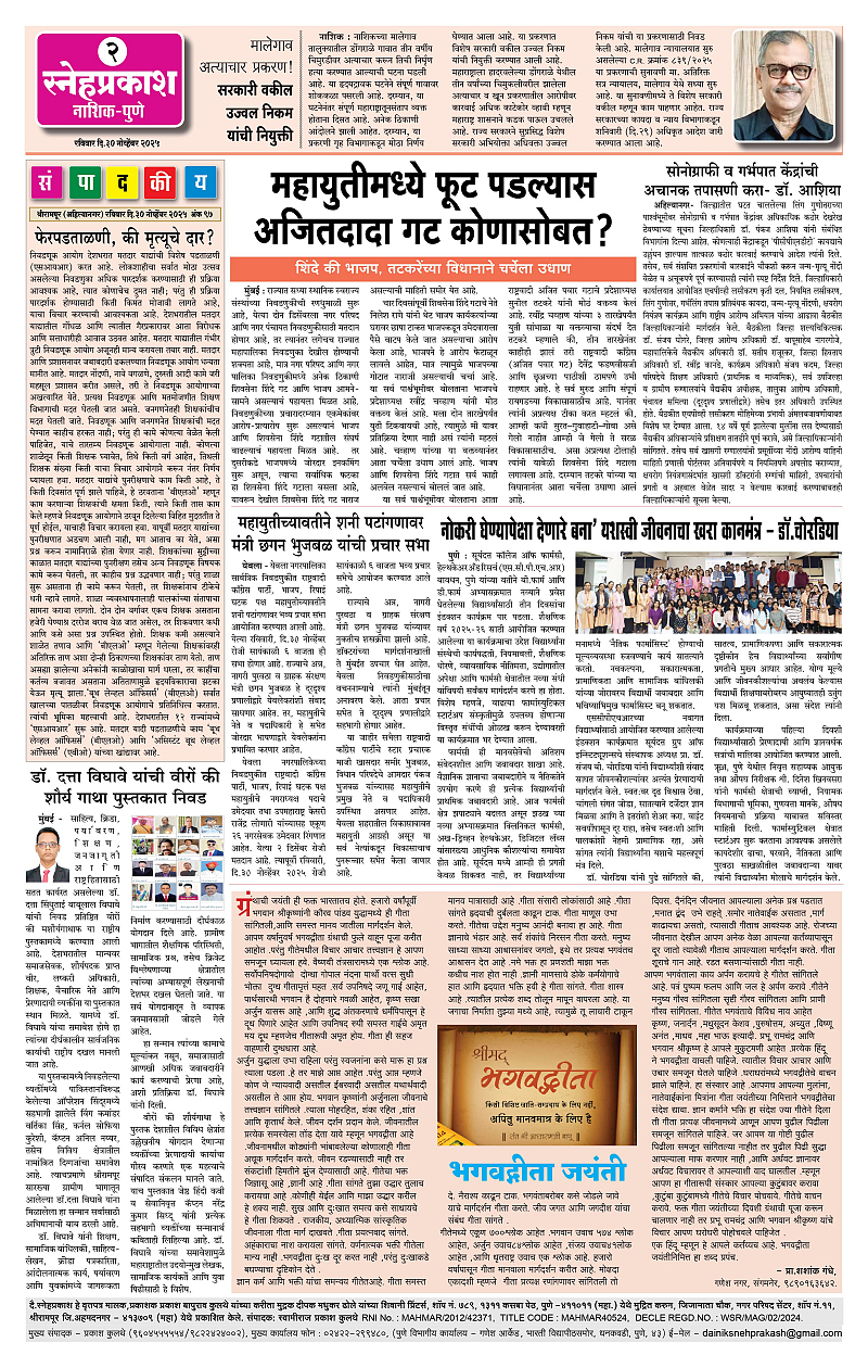 Daily Snehprakash (Marathi) Page: 2 November 30, 2025 Ahilyanagar-Pune-Nashik-shrirampur maharashtra 1 2 3 4 Page 1Page 2Page 3Page 4 × Daily Snehprakash (Marathi) 1-41-4 21-4 31-4 4 << First << 2 >> Last >> Page no 1Page no 2Page no 3Page no 4