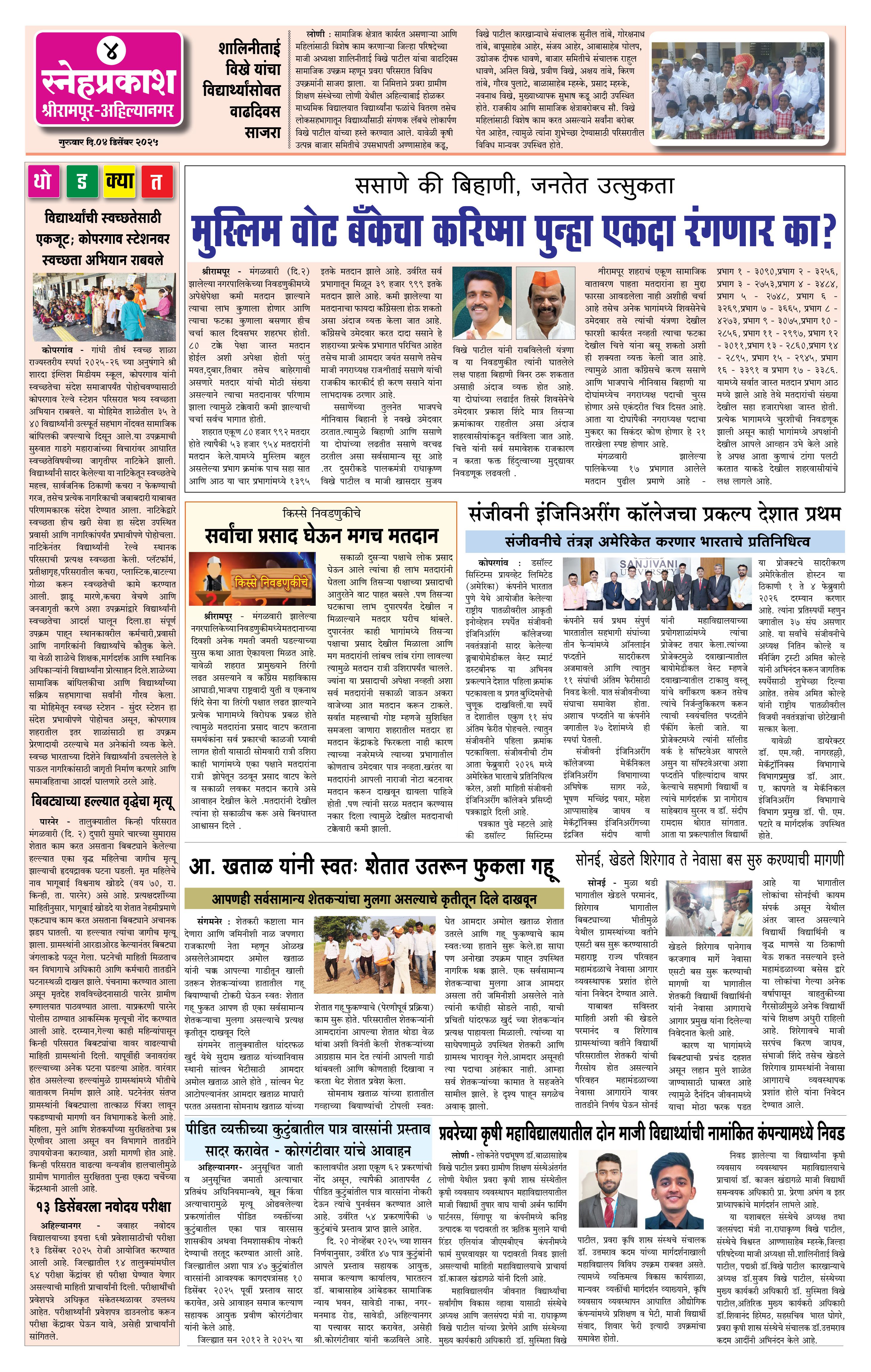 Daily Snehprakash (Marathi) Page: 4 December 04, 2025 Ahilyanagar-Pune-Nashik-shrirampur maharashtra 1 2 3 4 Page 1Page 2Page 3Page 4 × Daily Snehprakash (Marathi) 4424344 << First << 4 >> Last >> Page no 1Page no 2Page no 3Page no 4