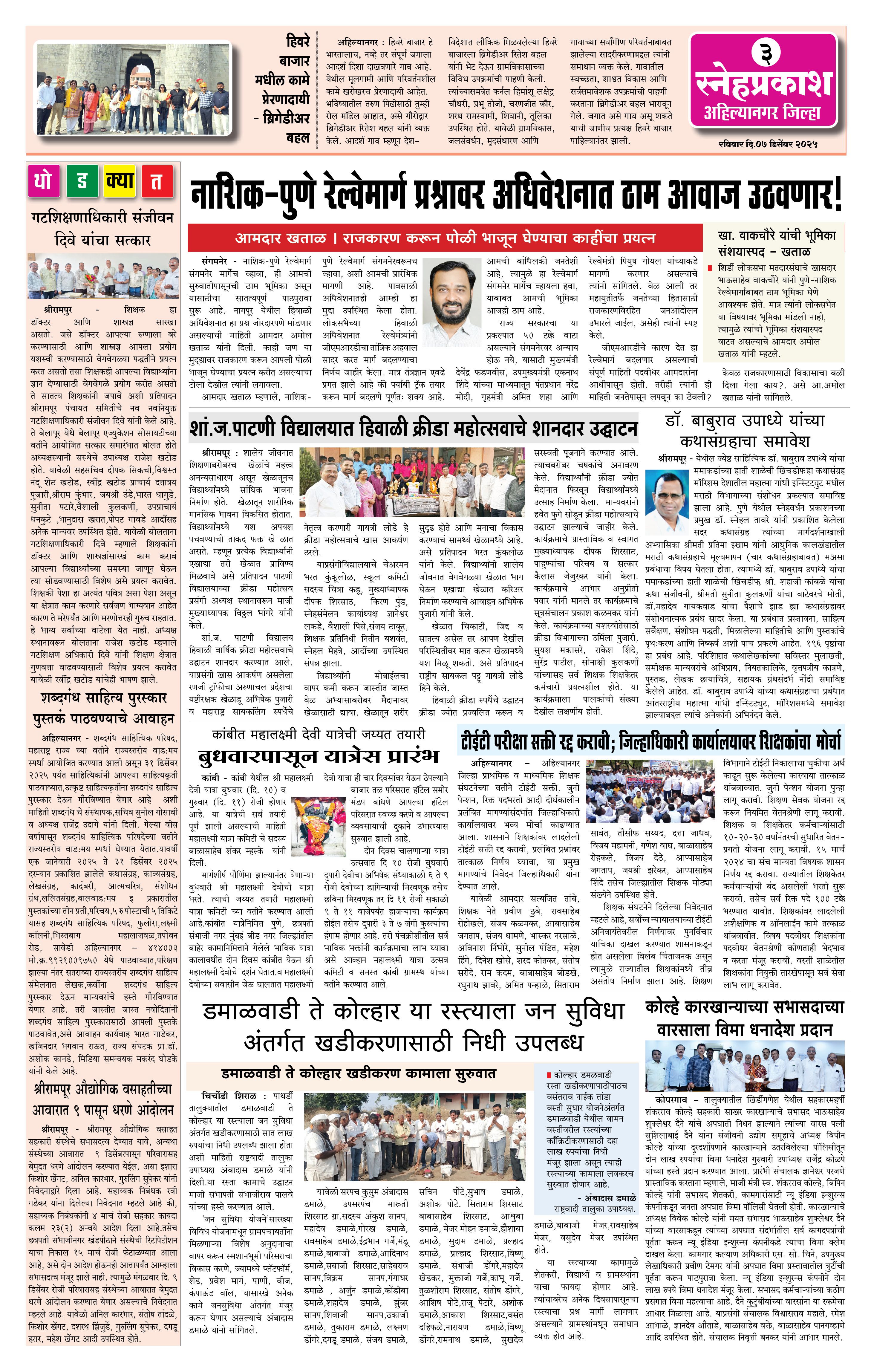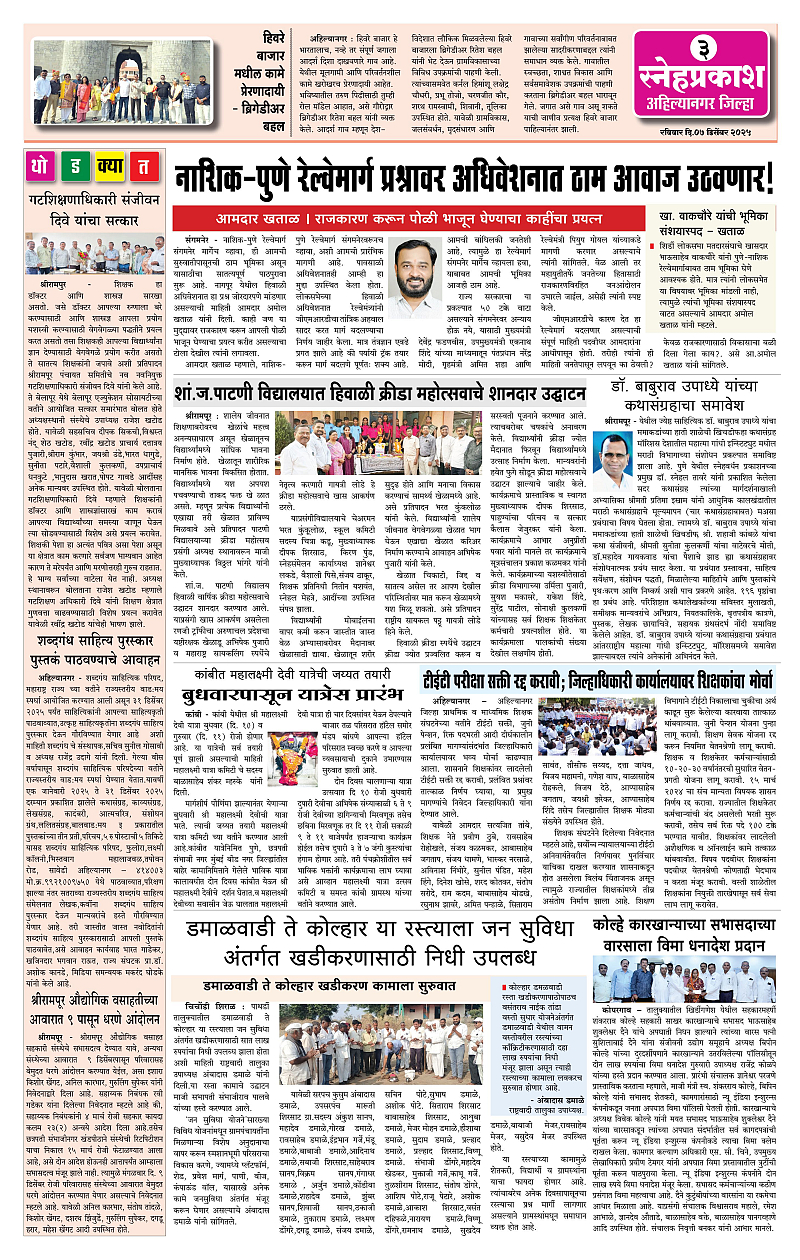Daily Snehprakash (Marathi) Page: 3 December 07, 2025 ahilyanagar-pune-nashik-shrirampur-maharashtra 1 2 3 4 Page 1Page 2Page 3Page 4 × Daily Snehprakash (Marathi) 1121314 << First << 3 >> Last >> Page no 1Page no 2Page no 3Page no 4