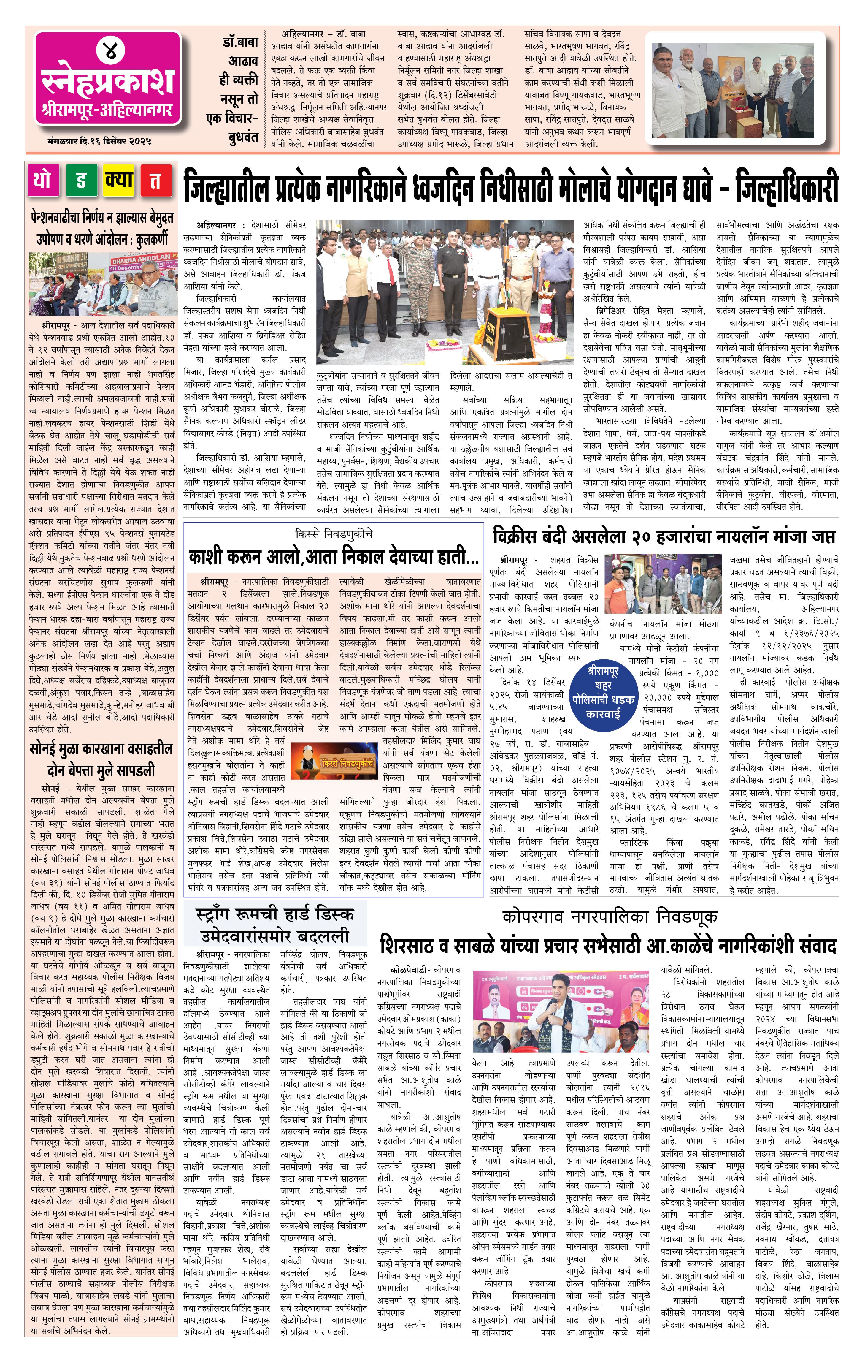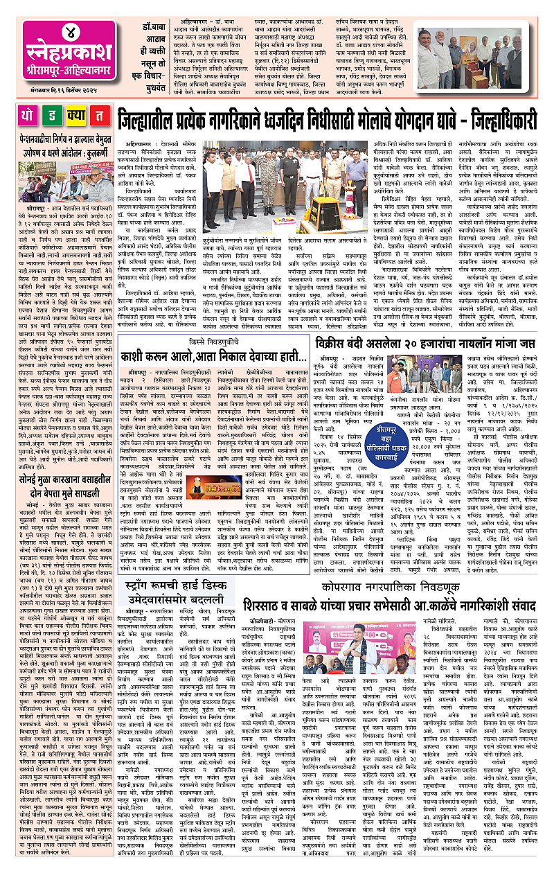 Daily Snehprakash (Marathi) Page: 4 December 16, 2025 Ahilyanagar-Pune-Nashik-shrirampur maharashtra 1 2 3 4 Page 1Page 2Page 3Page 4 × Daily Snehprakash (Marathi) 1-4 c1-4 c21-4 c31-4 c4 << First << 4 >> Last >> Page no 1Page no 2Page no 3Page no 4