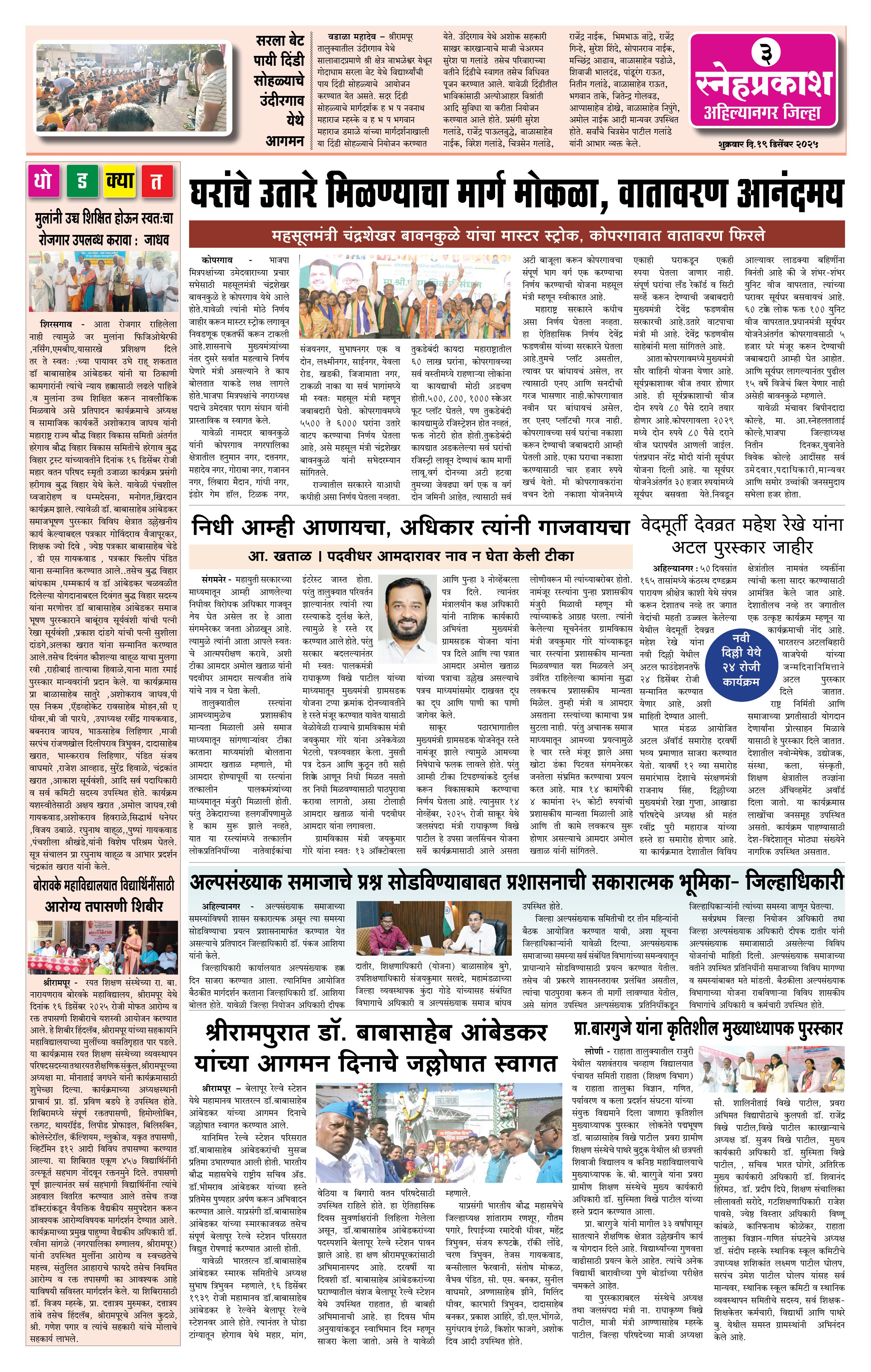 Daily Snehprakash (Marathi) Page: 3 December 19, 2025 Ahilyanagar-Pune-Nashik-shrirampur maharashtra 1 2 3 4 Page 1Page 2Page 3Page 4 × Daily Snehprakash (Marathi) 1-4 c1-4 c21-4 c31-4 c4 << First << 3 >> Last >> Page no 1Page no 2Page no 3Page no 4