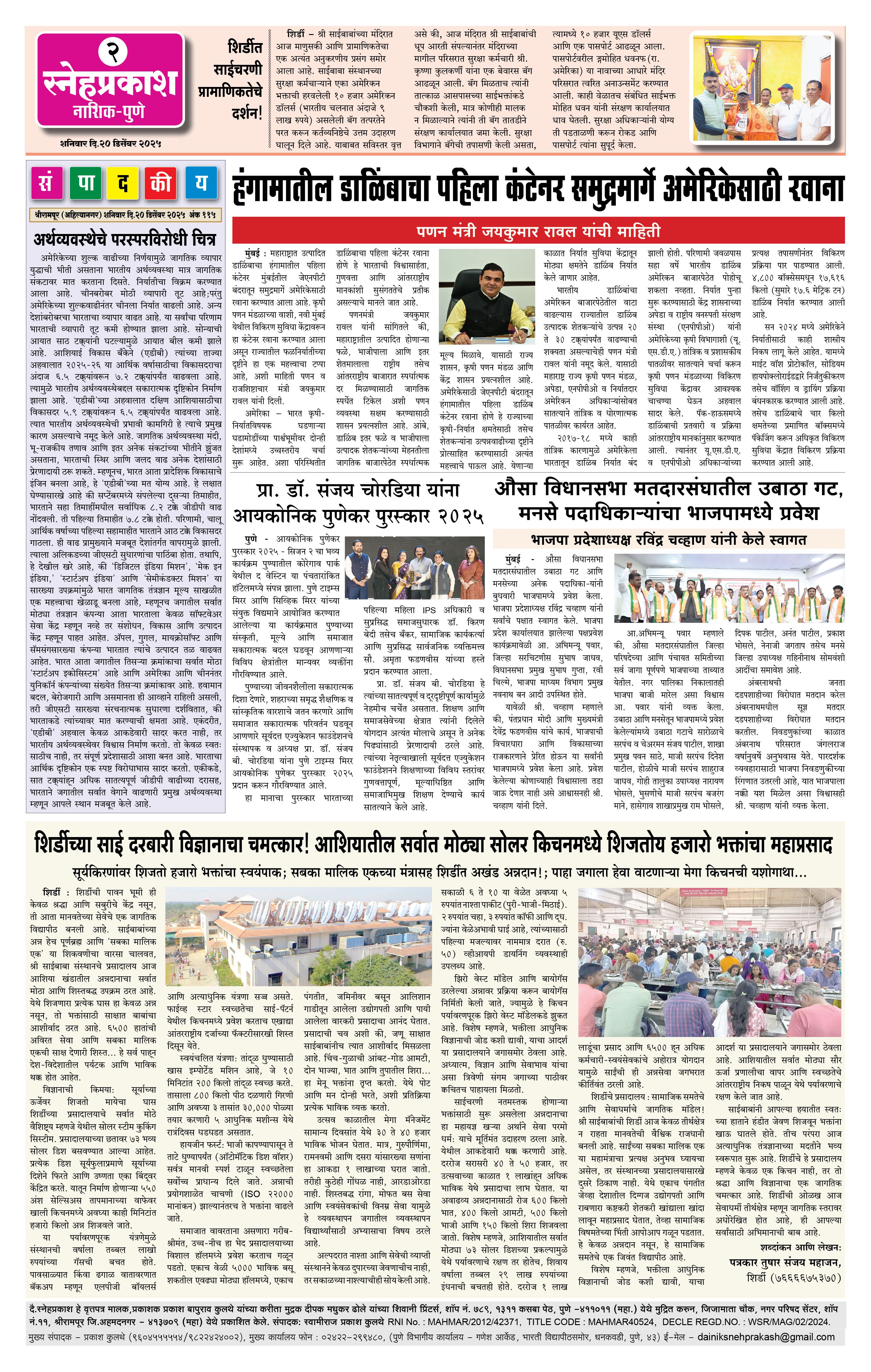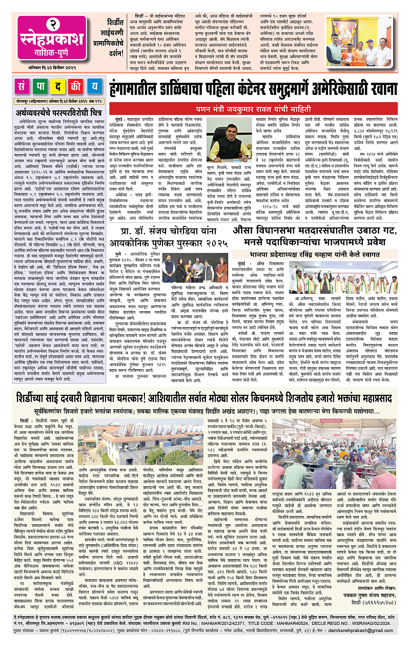 Daily Snehprakash (Marathi) Page: 2 December 20, 2025 Ahilyanagar-Pune-Nashik-shrirampur maharashtra 1 2 3 4 Page 1Page 2Page 3Page 4 × Daily Snehprakash (Marathi) 1-4 c1-4 c21-4 c31-4 c4 << First << 2 >> Last >> Page no 1Page no 2Page no 3Page no 4